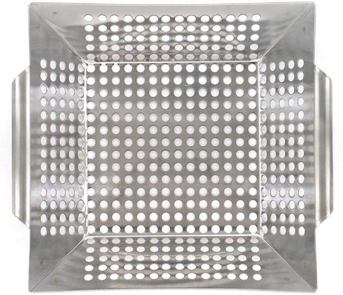 • GRILL TOPPER WITH TALL WOK-STYLE SIDES FOR SECURE COOKING - Designed with four high, curved sides, this stainless steel grill basket keeps food safely contained while grilling, making it perfect for vegetables, seafood, stir-fries, and other small ingredients. The tall wok-like design prevents spills and makes flipping, tossing, and stirring easy and mess-free. Ideal for BBQs, outdoor grilling, and camping, this durable grill topper enhances control, reduces waste, and delivers a cleaner, more enjoyable cooking experience every time.