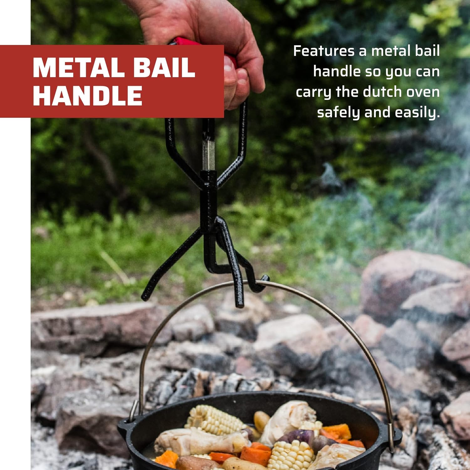 • Flanged lid for placing coals on top