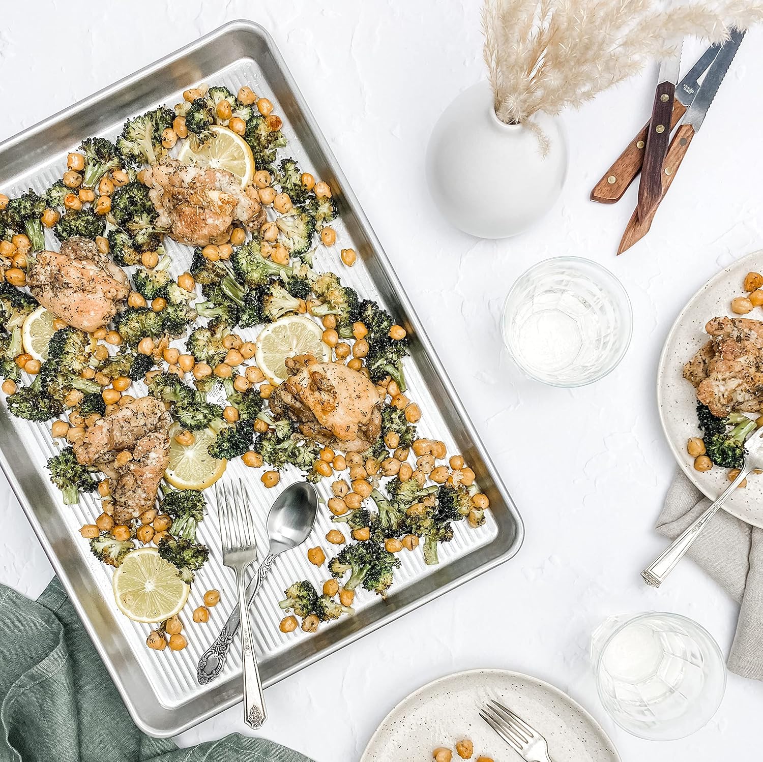 • 3 piece bakeware set includes: 17 x 12. 25 inch cookie sheet, 12. 5 x 9 inch quarter sheet pan and 17. 25 x 12. 25 inch half sheet baking pan