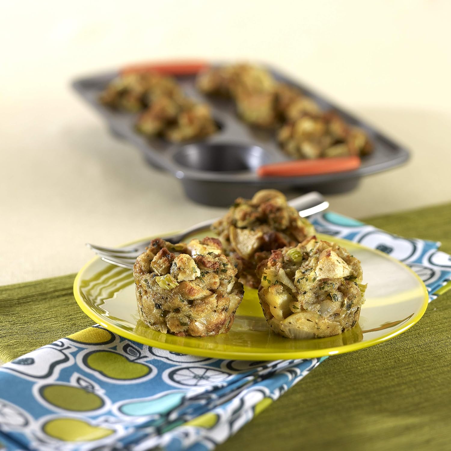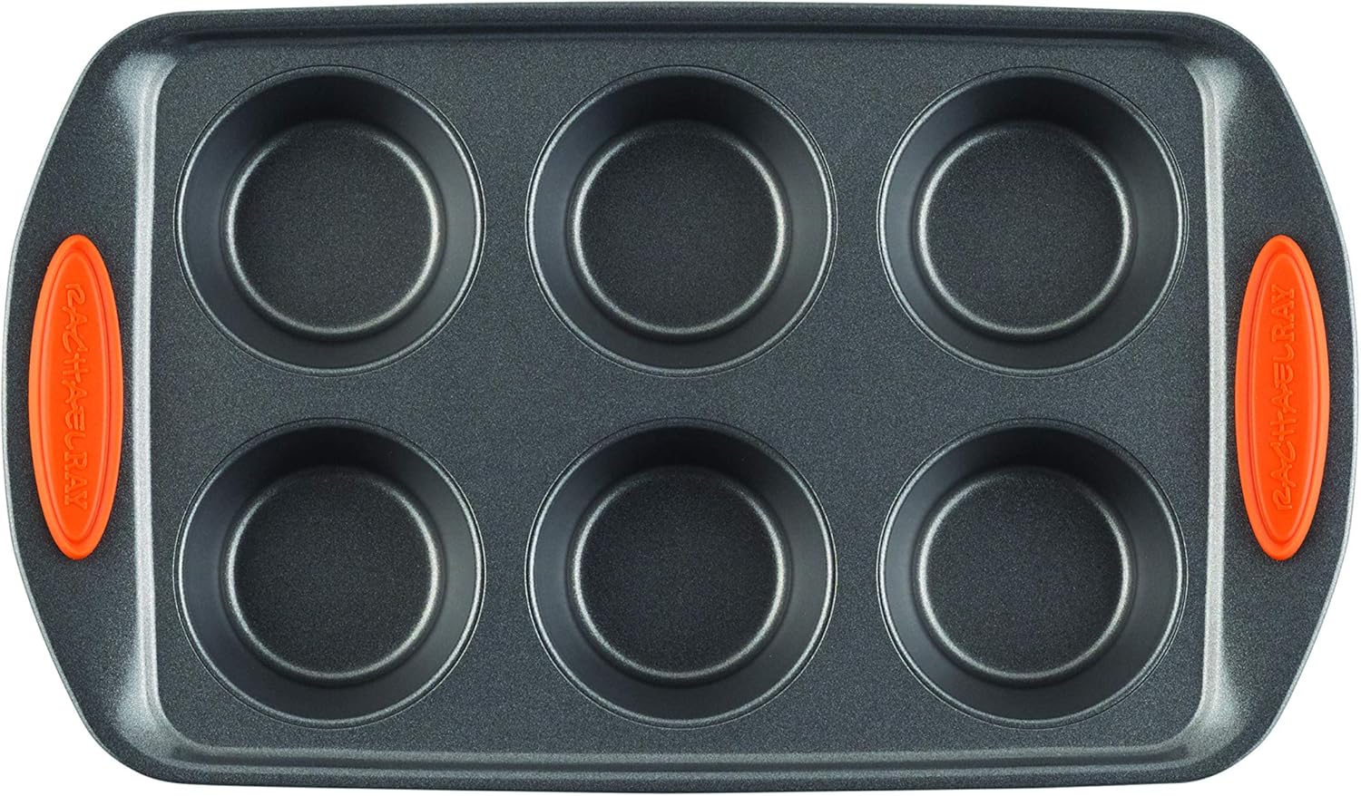 Rachael Ray Yum-o! Nonstick Bakeware Oven Lovin’ Cups Muffin Pan, 6-Cup, Gray with Orange Handles
