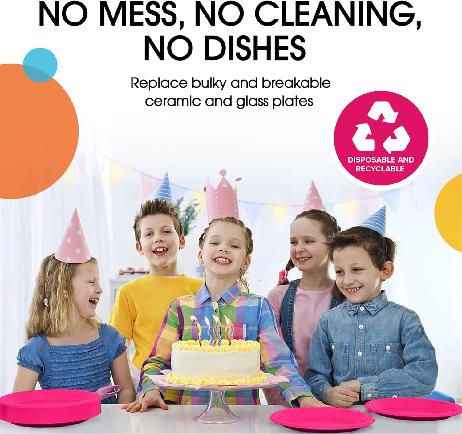 • High quality bulk pack plastic plates Round desert plates Available in 20+ colors Disposable - cleanup is easy!