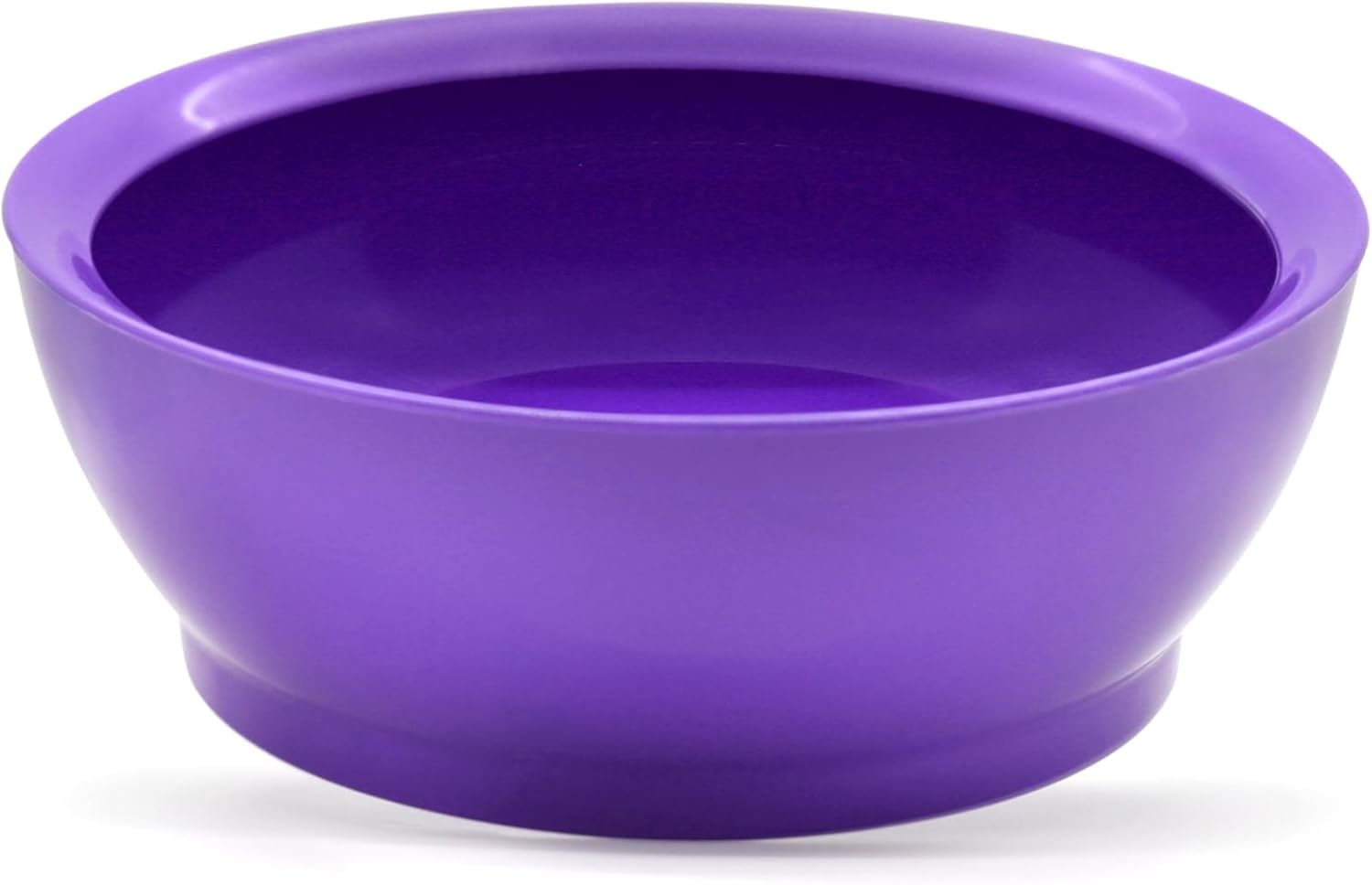 Large Non-Spill Plastic Bowl Set - 28oz Reusable Kitchen Bowls with Concave Inner Lip and Non-Slip Base - For Cereal, Soups, Mixing and Serving - Set of 4 - Sunset Purple