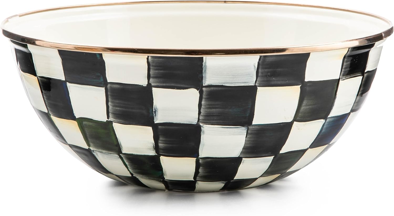 • ELEGANT ESSENTIAL: Elevate any meal with this decorative bowl. It has a hand-glazed heavy-gauge steel underbody and a bronzed stainless-steel rim and is decorated with hand-painted black-and-white checks.
