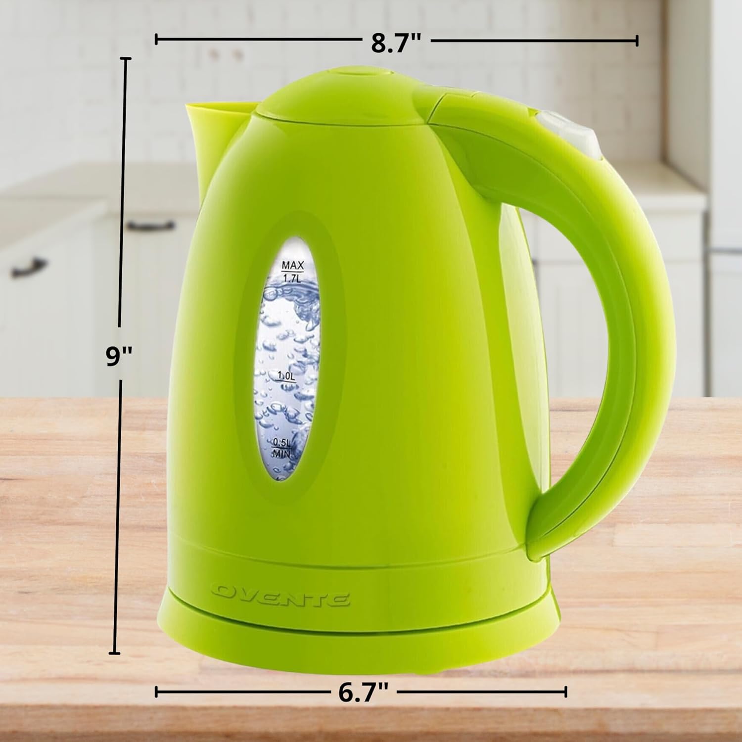 OVENTE Electric Kettle, 1.7L Fast Boiling Water Heater for Coffee or Tea, BPA Free with Water Level Gauge, Auto Shut-Off, Boil-Dry Protection, Indicator Light and Removable Filter, Green KP72G