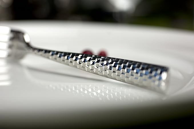 • 1- 9 inch serving spoon in Lucca Faceted pattern; features heft, weight and balance in hand