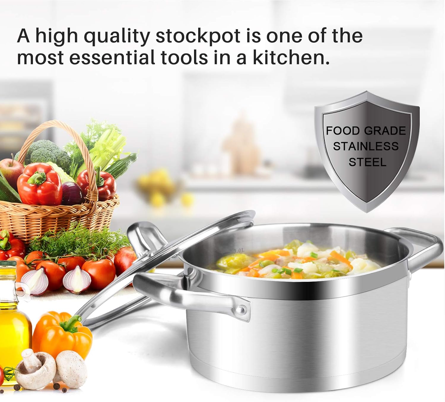 • HIGH QUALITY MATERIAL: This 4.2 quarts stockpot is manufactured with 304 food grade stainless steel. Heavy gauge impacted-bonded aluminum encapsulated bottom of the cooking set provides a quick, even and energy-efficient heating