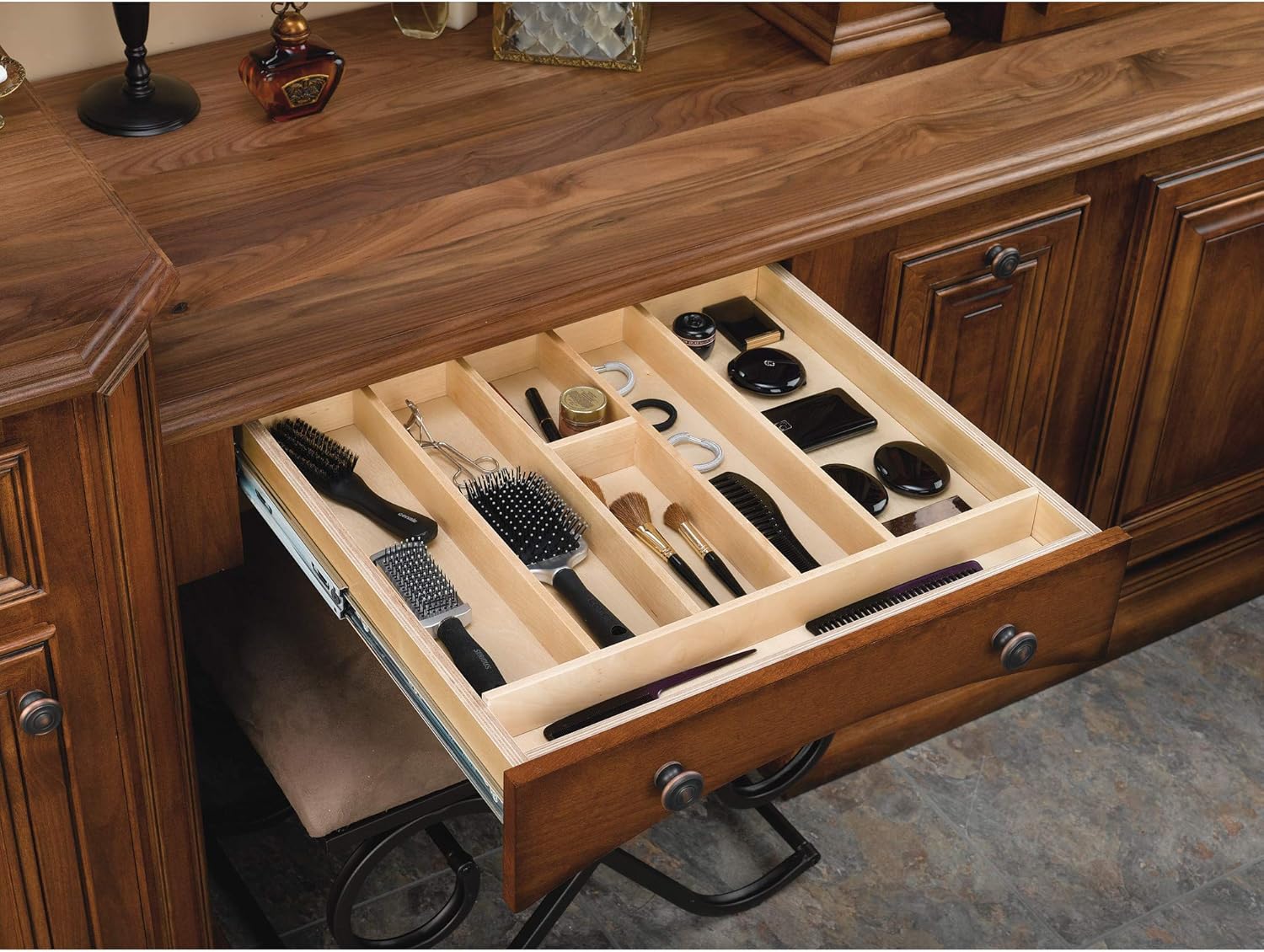 • Silverware Organizer Tray: Maximize drawer space and efficiency in the kitchen with the 7-compartment tray drawer organizer built with a classic maple hardwood