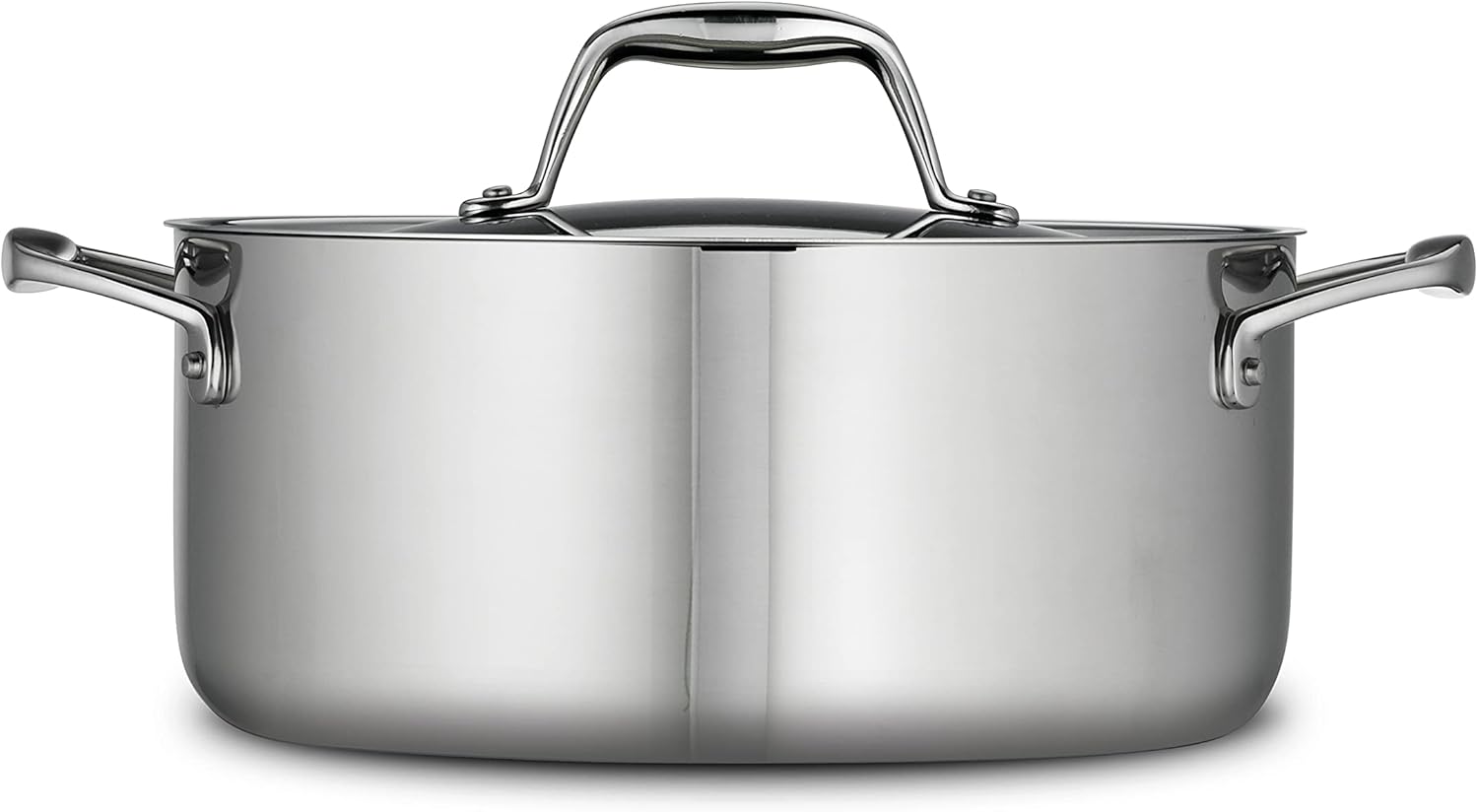 Tramontina Signature Tri-Ply Clad Stainless Steel 5-Quart Dutch Oven Pot with Lid, Induction-Ready, Dishwasher-Safe, NSF-Certified, Made in Brazil
