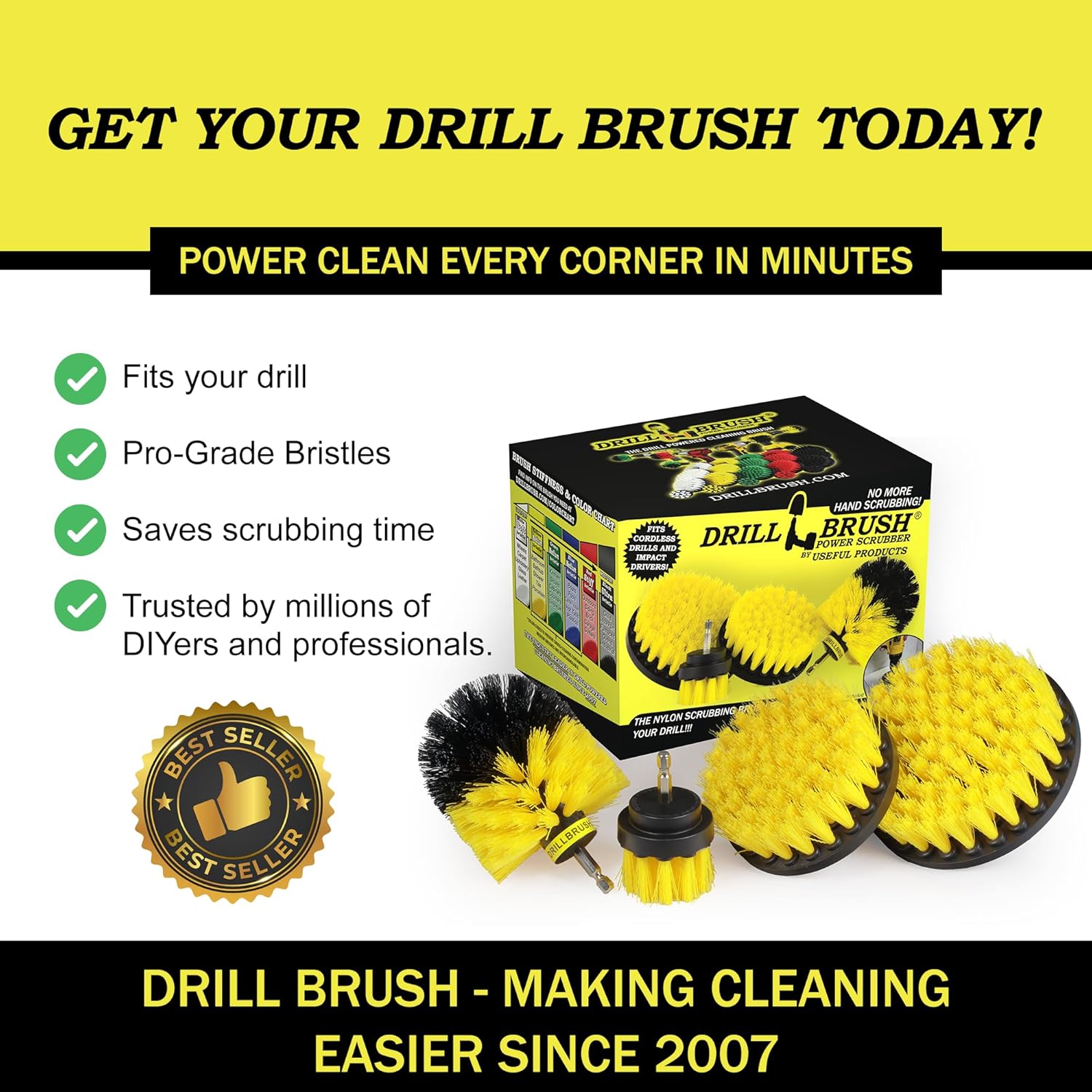 • CRAFTED BY INNOVATORS, TRUSTED BY MILLIONS - THE DRILLBRUSH STORY: Born from a real need and refined through feedback, Drillbrush Power Scrubber products are proudly made by cleaning enthusiasts for cleaning enthusiasts. With millions sold, our brush attachment for power drill lineup reflects a commitment to quality, innovation, and customer satisfaction. Experience the difference with Drillbrush — inventor/innovator of drill attachment scrub brush products