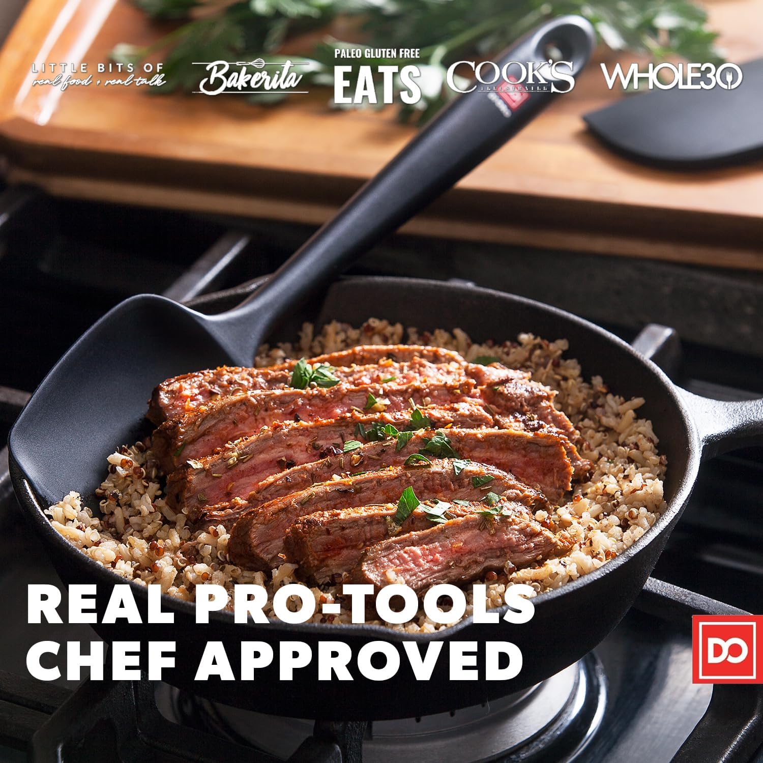 • THE PERFECT COMPLEMENT TO NON-STICK COOKWARE - Whether cooking the perfect scrambled eggs or sautéing a medley of summer vegetables, you can rest assured that our non-stick pro-grade silicone will not scratch your expensive cookware.