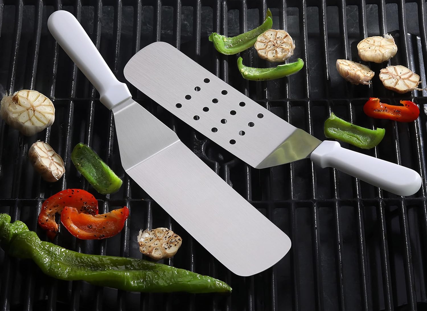 New Star Foodservice 36176 Plastic Handle Flexible Grill Turner/Spatula, 14.5-Inch, Perforated, White