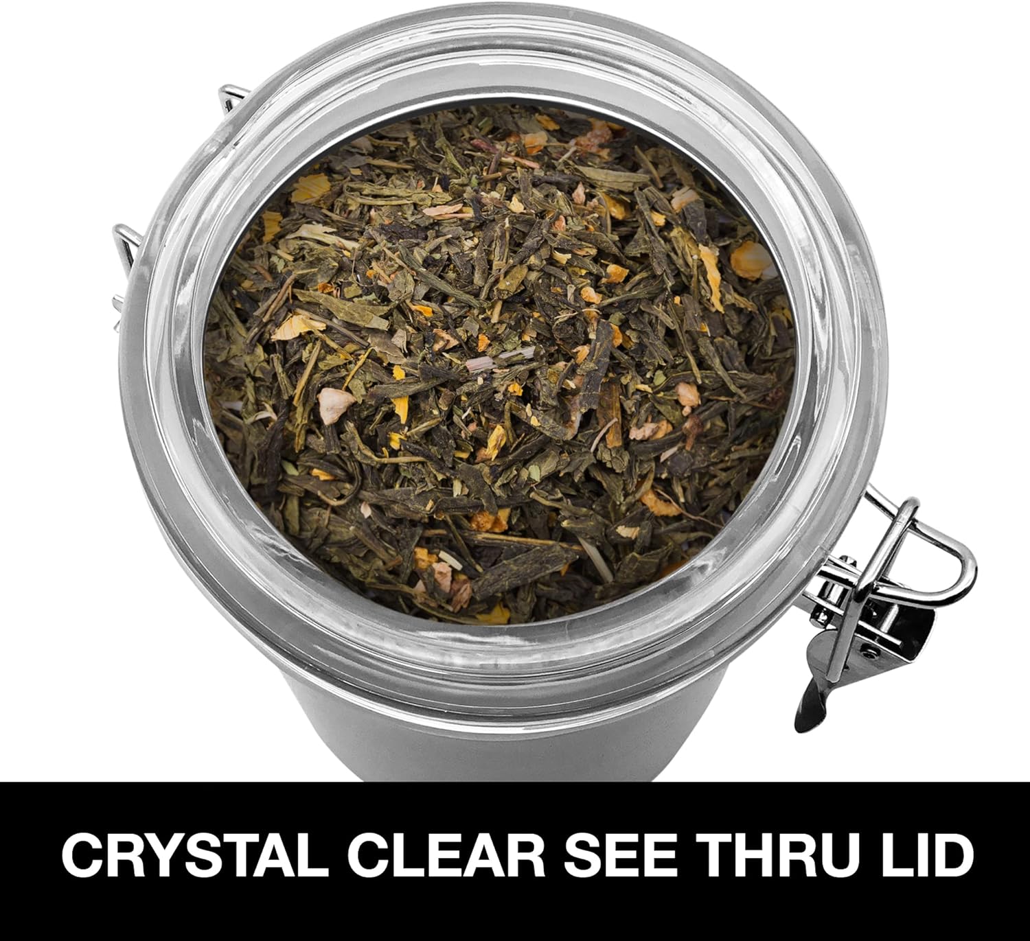 • PREMIUM MATERIALS: OGGI Stainless Steel Tea Canisters are crafted from food grade stainless steel and the clear lids are BPA free with a long-lasting silicone seal to protect your favorite brew.