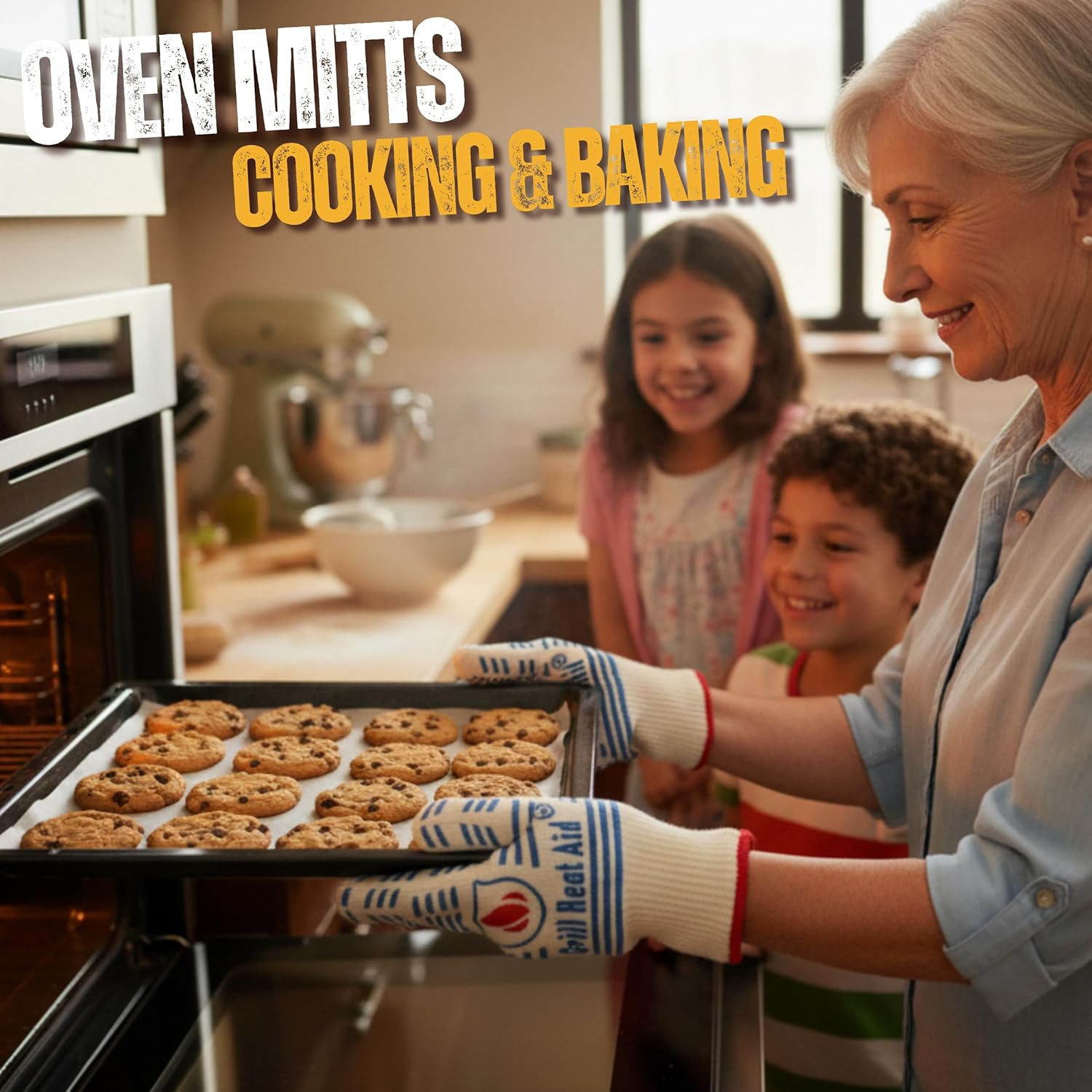 • 🔥 EXTREME HEAT RESISTANT GLOVES: Premium kitchen mitts for oven EN407 certified, withstanding heat up to 1472°F. Crafted from 100% Aramid flame retardant fabric aka Kevlar Gloves, oven mitts heat resistant gloves handle hot cookware and flames.