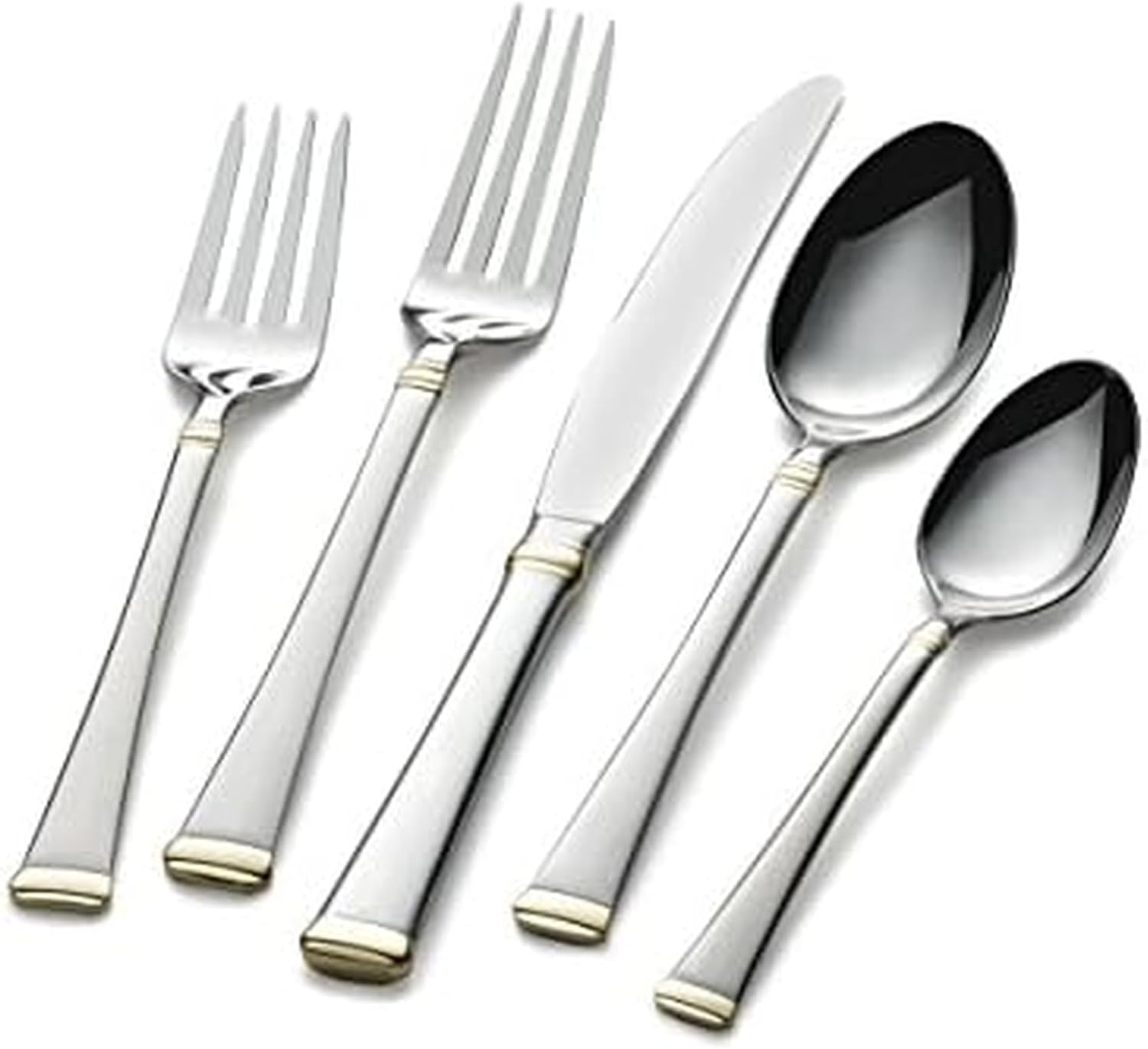 Mikasa Gold Accent Harmony Flatware Set for 12, 65 Piece 18/10 Stainless Steel Silverware with Gold-Trimmed Handles and Serving Utensils, Elegant Dinnerware Service