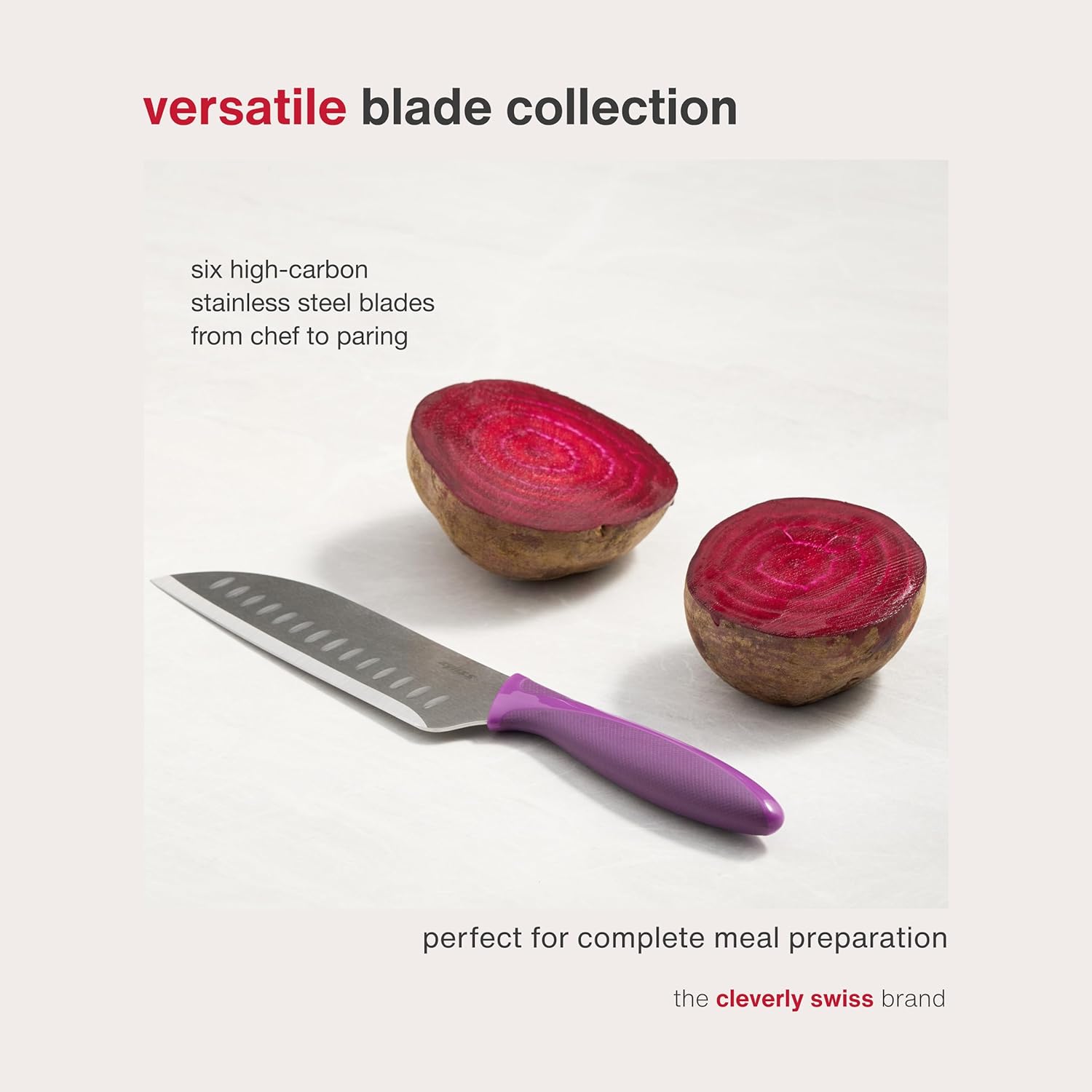 • Kitchen Knife Set: Includes chef's, santoku, utility, serrated paring, paring and peeling knives