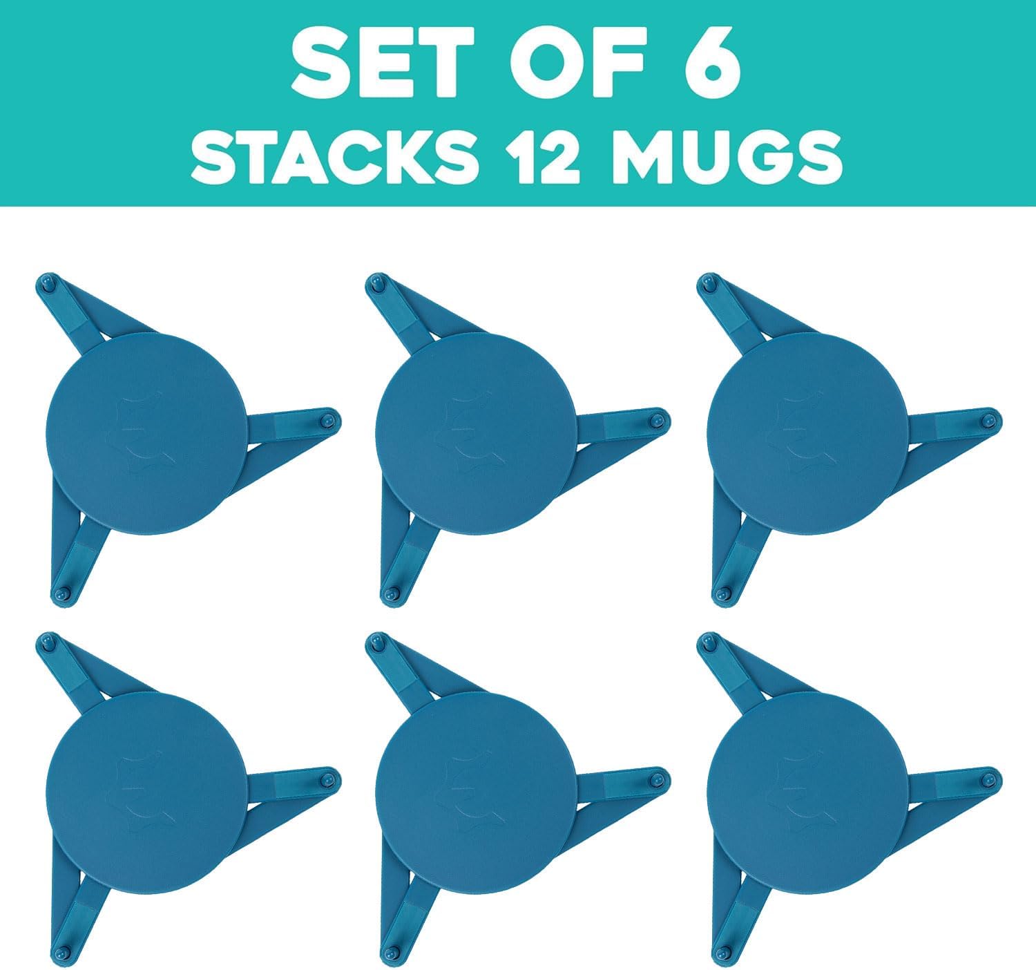 ELYPRO Mug Stacker 6-Pack – Coffee Bar Cup Holder & Cabinet Mug Organizer | Adjustable Stackable Mug Rack for Mugs & Glasses – Compact No Drilling Storage for Small Kitchens – Blue