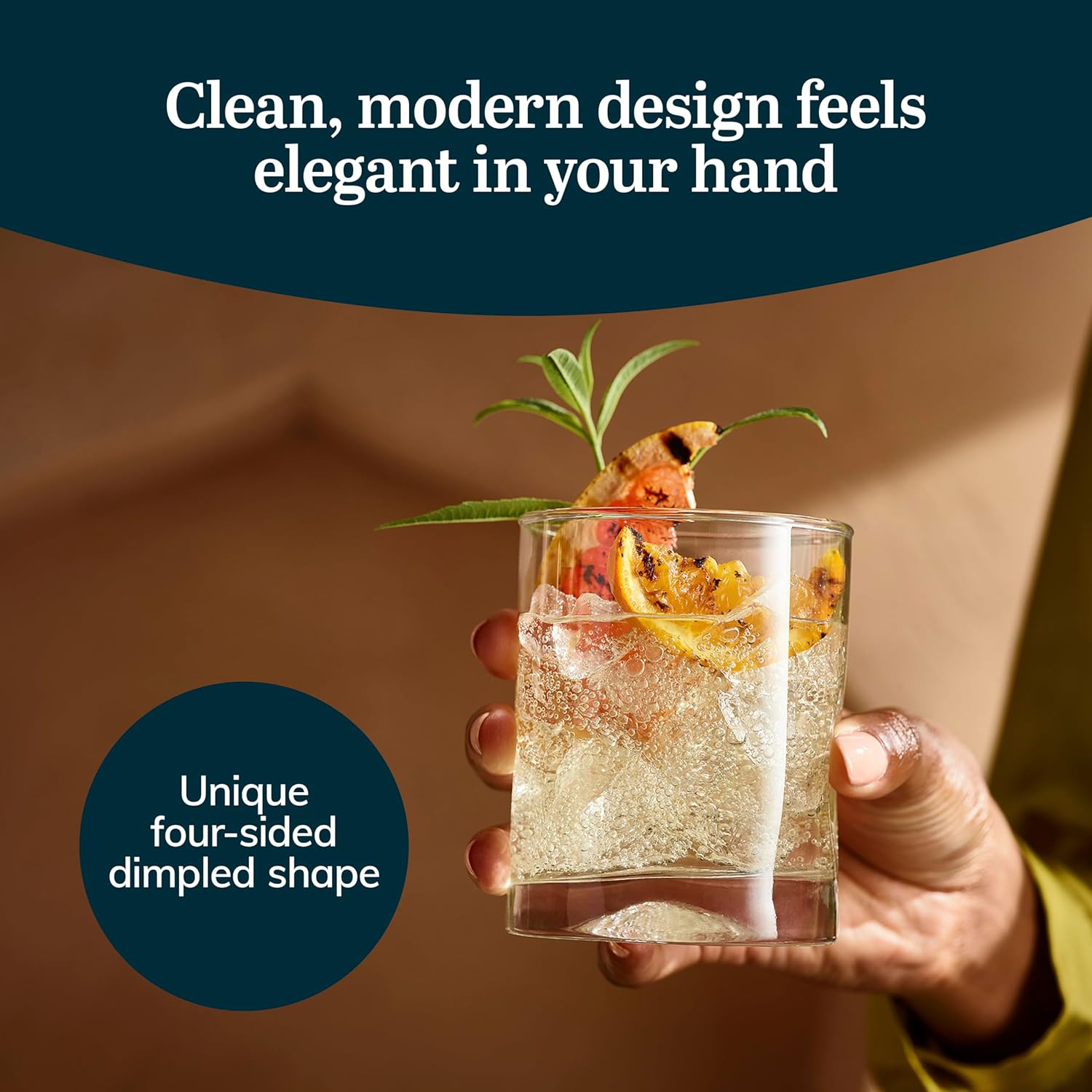 • Unique Design: Crafted from glass, these kitchen drinking glasses feature a unique four-sided dimpled shape – this unique shape ensures the drinking glasses of our drinkware glass set have an easy grip and fit snugly in your hand