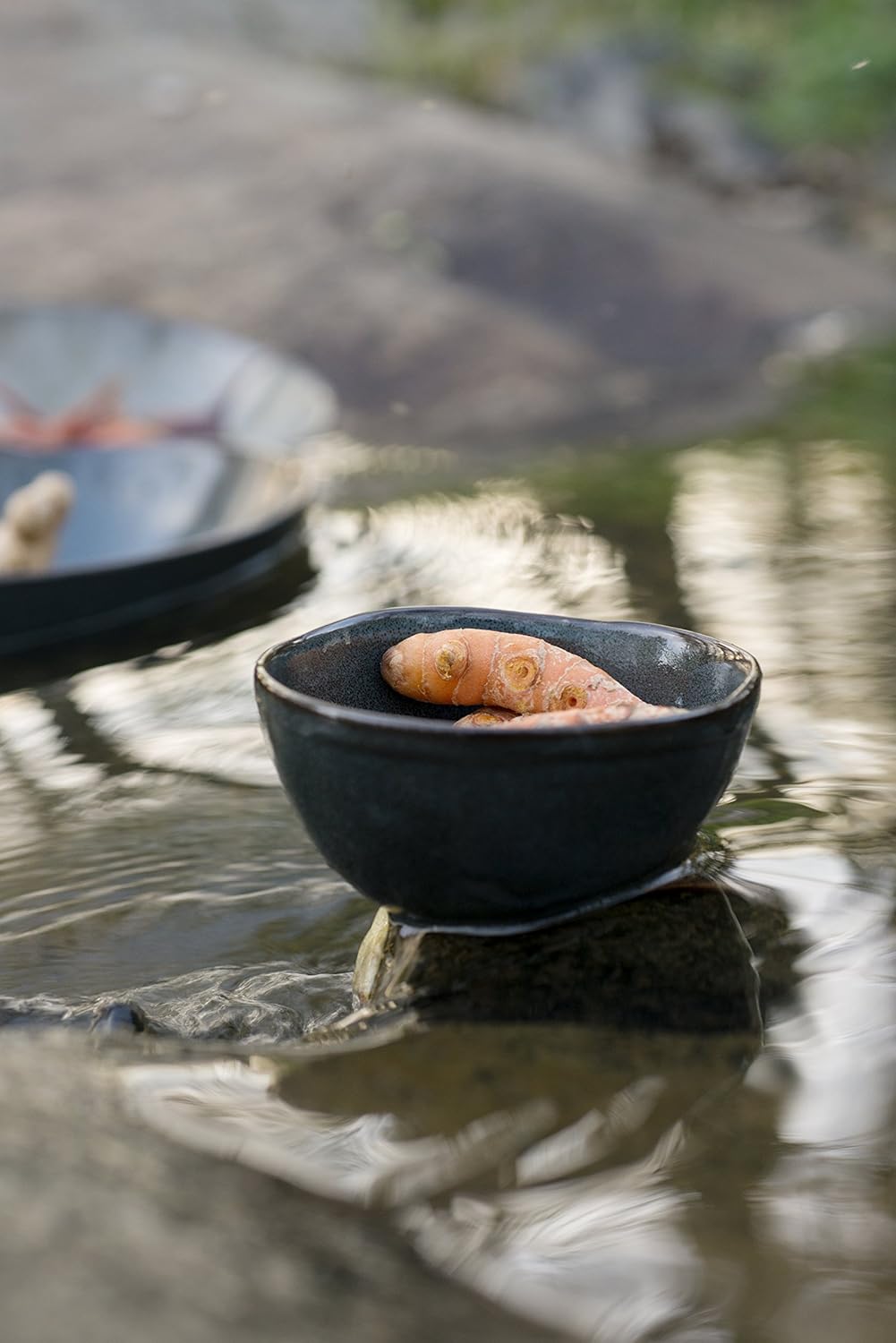 • Set of 3 bowls in Stōn pattern; 7.5-inch by 3.5-Inch; twilight blue color