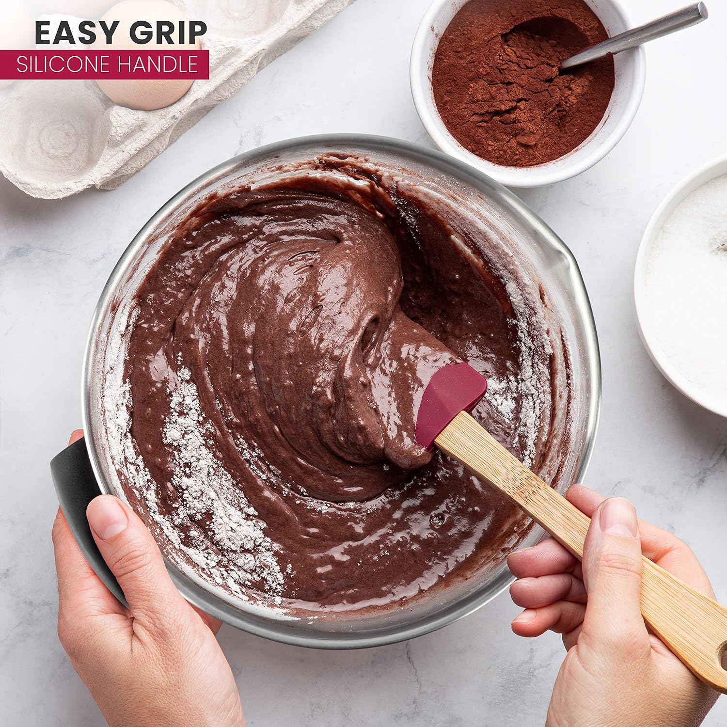 AVACRAFT 18/10 Stainless Steel Mixing Bowls with Lids, non slip silicone base bowls with Handle, Mixing Bowl Set with Pour Spouts & Measurement Marks, Home Essentials Cooking Bowls, (Black)