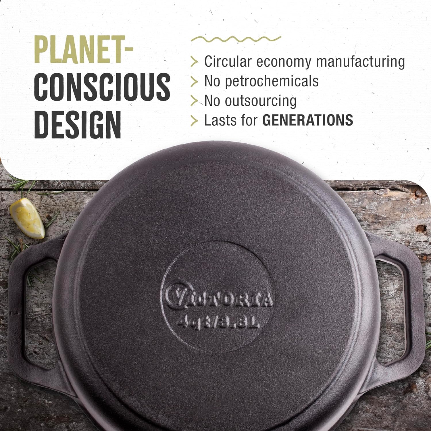 Victoria 4-Quart Cast Iron Dutch Oven with Lid and Dual Loop Handles, Seasoned with Flaxseed Oil, Made in Colombia,Black