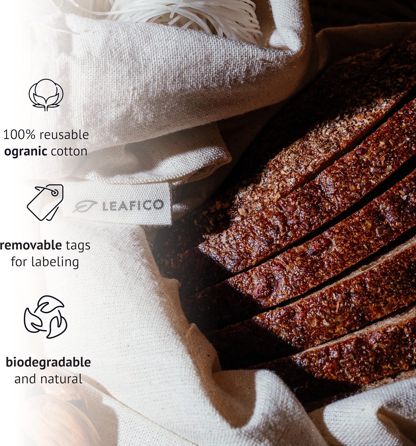 • Save The Ocean - We love the oceans, help remove plastic waste from our oceans. Use Leafico organic, biodegradable 100% cotton/muslin storage bag. Natural cotton fabric bags are smooth and soft providing good air circulation. Great muslin fabric bags.
