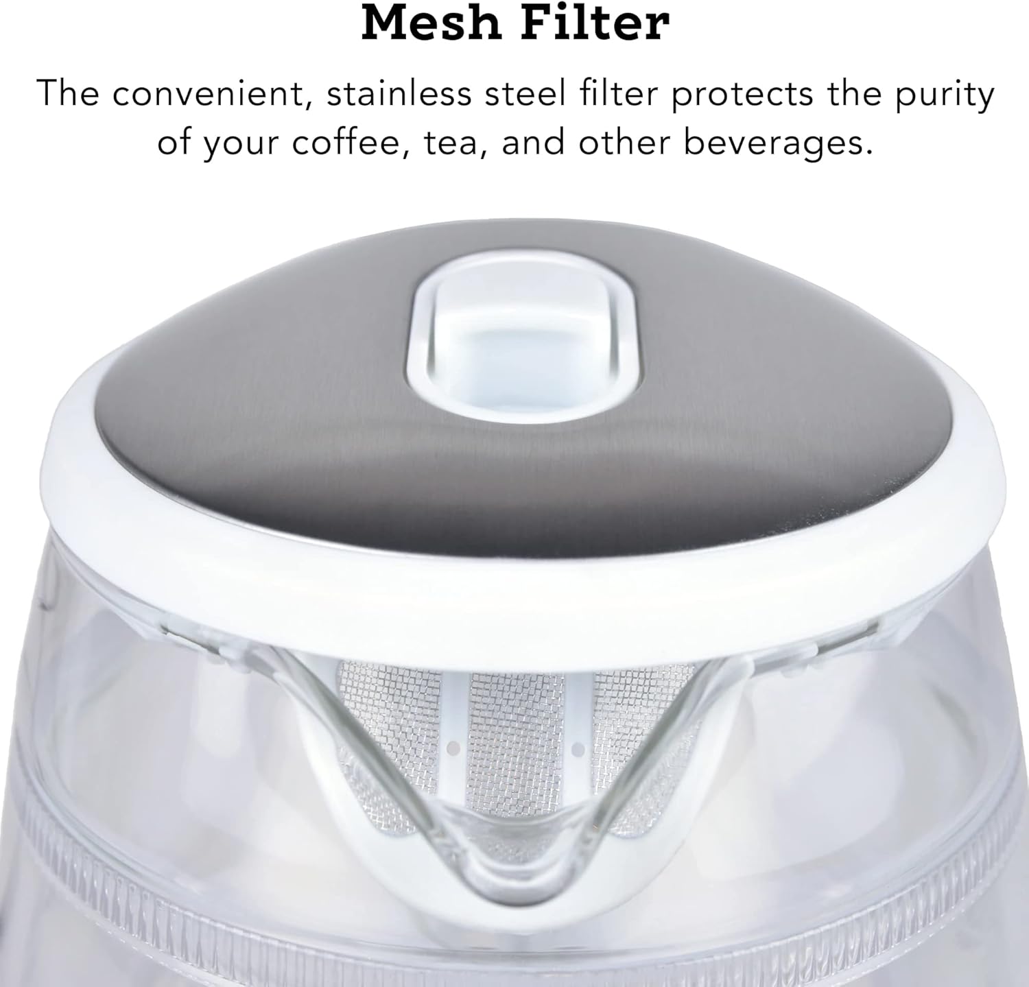 • Double-Walled Construction: Inner glass wall with a plastic outer layer adds durability and protects you from burns when the electric water kettle is hot while keeping your water safe from plastic contact
