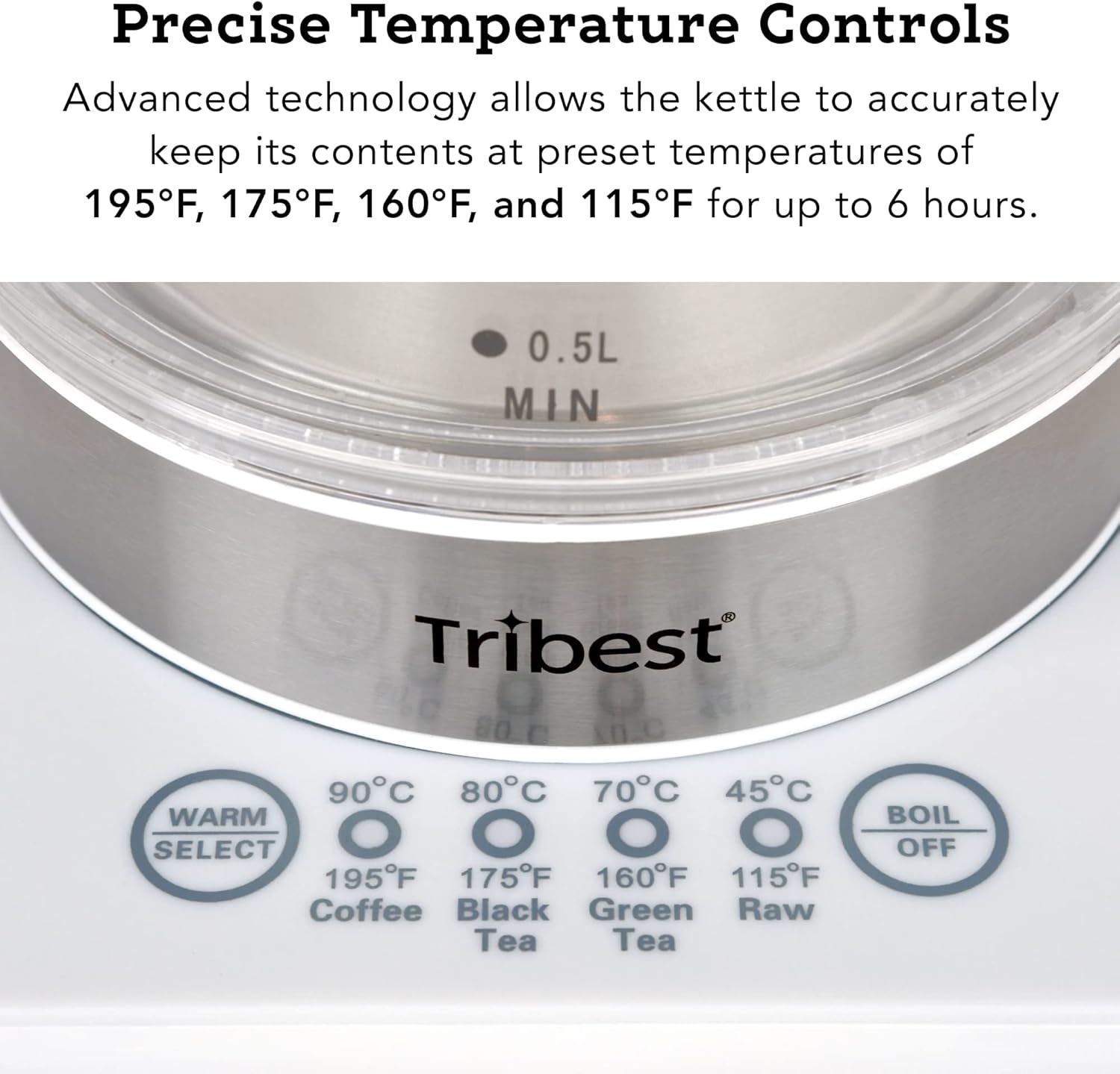 Tribest GKD-450 Hot Water Kettle, Electric Water Boiler & Water Warmer with Glass Tea Kettle, 110V, White