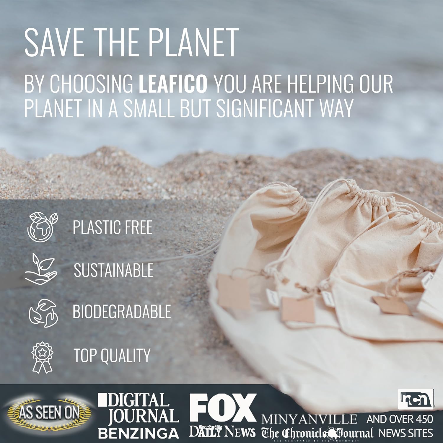 • Remove Plastic and Save Money - No more plastic bags. Use Leafico organic, biodegradable 100% cotton/muslin storage bag. Natural cotton fabric bags are smooth and soft, which allows for air circulation. Great muslin fabric bags.