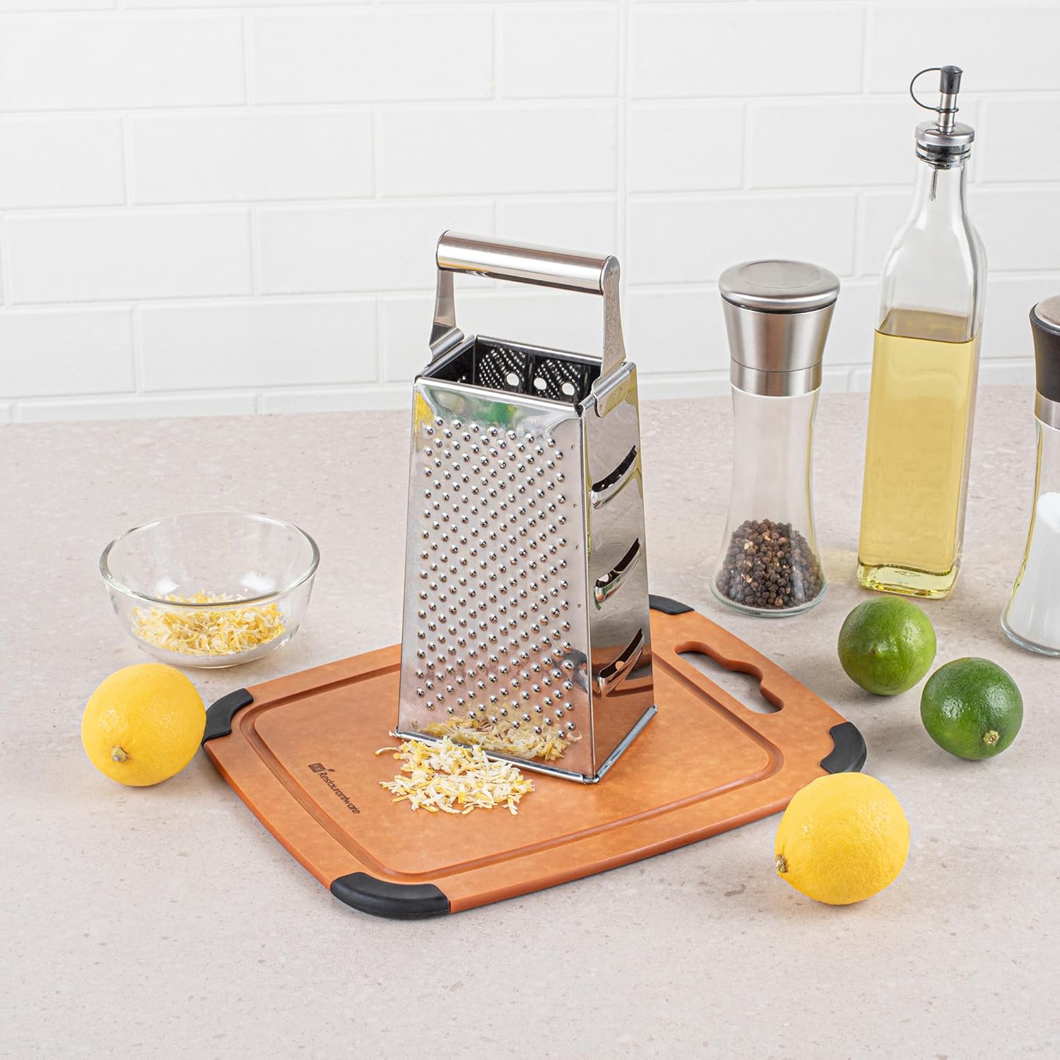 • SO MANY USES: Use this box grater to grate cheese, zest oranges, shred chocolate, make breadcrumbs, grate zucchini, and more. A must-have multi-purpose kitchen tool!