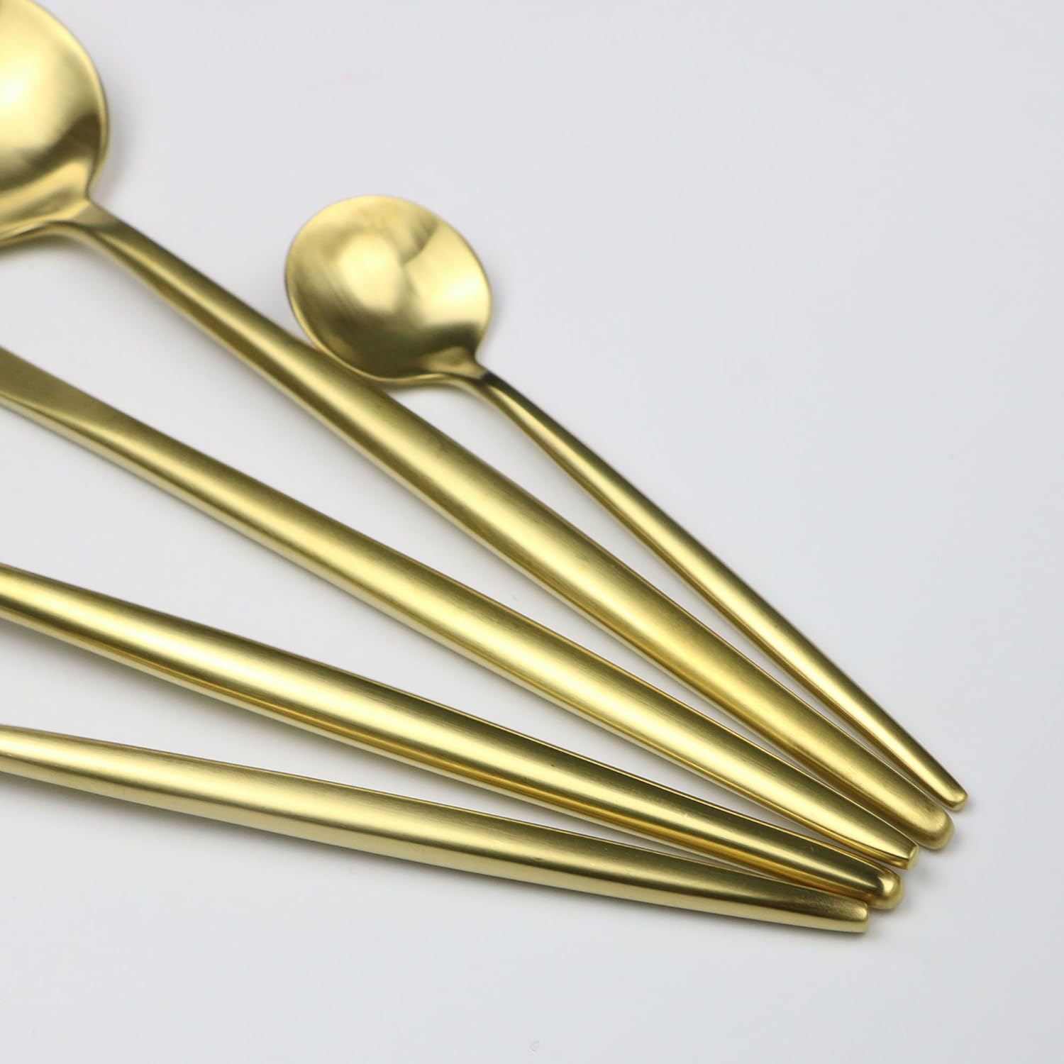 Customized 5-Piece 18/10 Stainless Steel Flatware Set, Serive for 1, With Fork Spoons Knife Teaspoon Dessert Fork for Home Kitchen Restaurant Hotel (Matt Gold)
