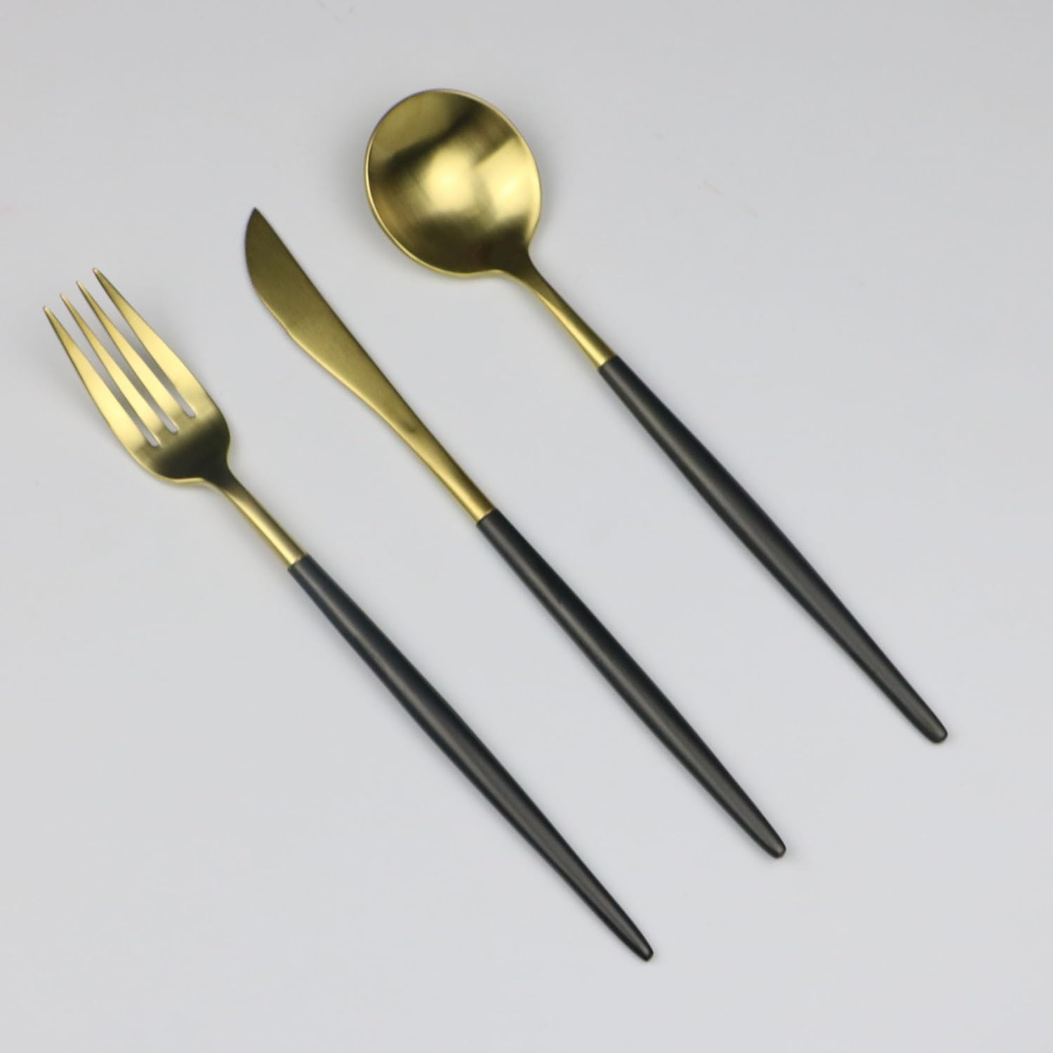 Customized 5-Piece 18/10 Stainless Steel Flatware Set, Serive for 1, With Fork Spoons Knife Teaspoon Dessert Fork for Home Kitchen Restaurant Hotel (Black + Gold)
