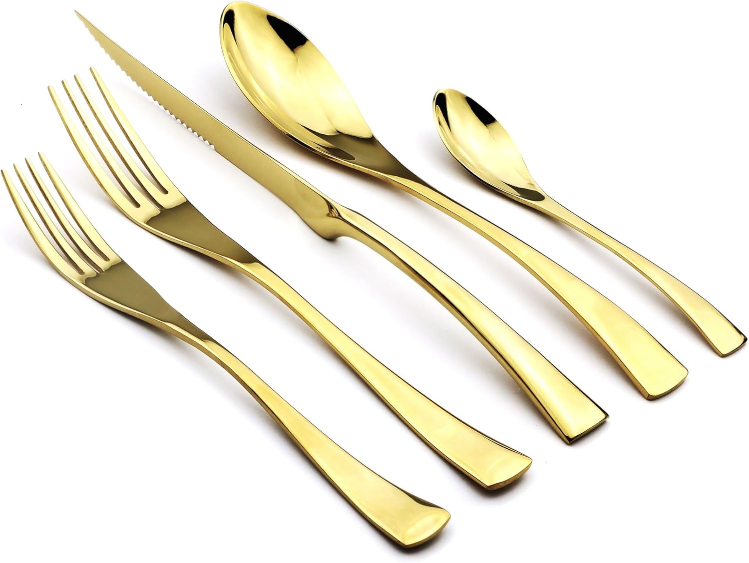 20-Piece 18/10 Stainless Steel Serrated Steak Knife Flatware Set, Mirror Polishing Gold,Service for 4