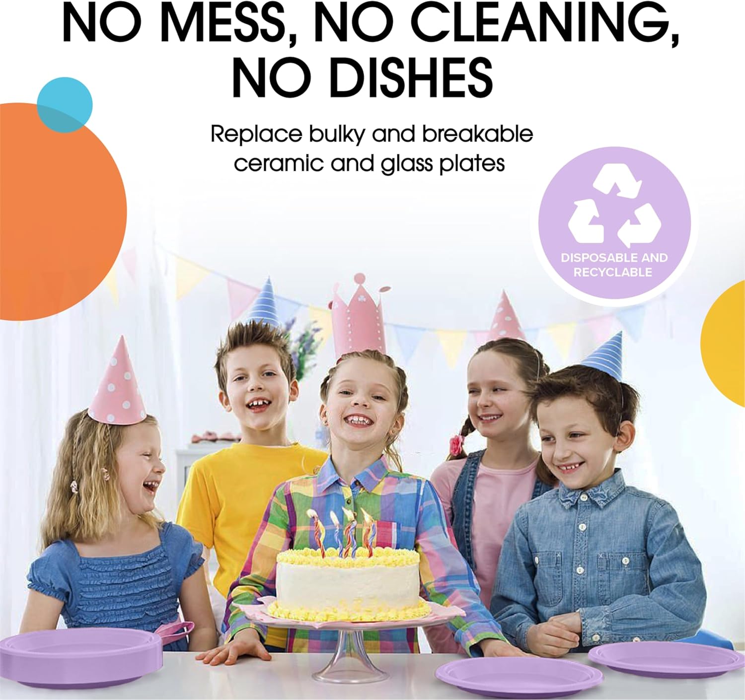 • Health & Safety: Our lavender plastic plate set is made with food-safe materials, ensuring the health and safety of your guests. Whether it's for a birthday party or a picnic, you can trust that these disposable plastic plates meet the highest standards of hygiene, providing peace of mind for you and your loved ones.