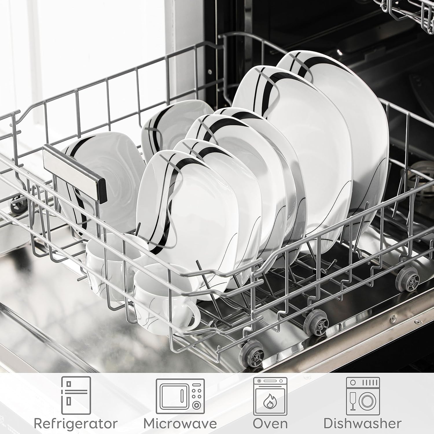 • USE & CARE: Suitable for use in the dishwasher, oven, microwave and freezer. Cooking will become more simple and filled with pleasure. More smooth than usual dinner sets, yet still sturdy. Take good care of it, it can be used for years over years