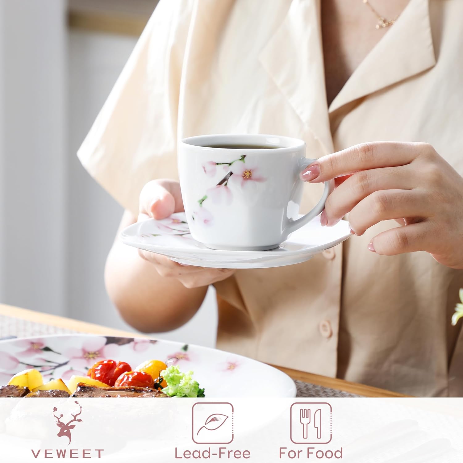 VEWEET Annie Porcelain Dinnerware for 6, 30-Piece Pink Floral Dish Set With Plates and Bowls Including Dinner, Dessert, Soup, Cups & Saucers