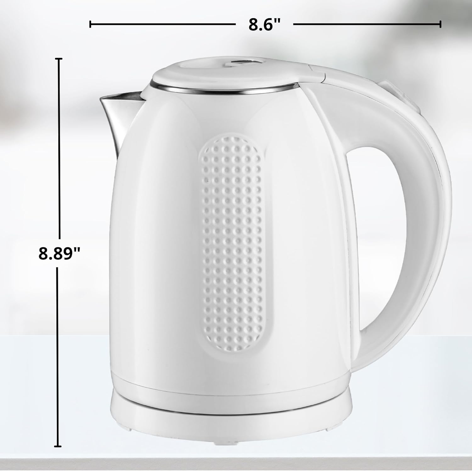 • DOUBLE-WALL DESIGN – Say goodbye to traditional single-wall plastic kettles. This electric kettle features a stainless steel interior that keeps water warm for longer periods while ensuring the exterior remains safe to touch. Not only does it maintain heat efficiently, but it also provides added safety, making it ideal for households with elderly individuals or children.
