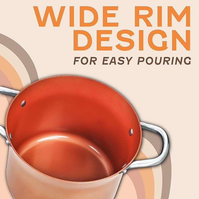 CONCORD 7 QT Copper Non Stick Stock Pot Casserole Coppe-Ramic Series Cookware (Induction Compatible)