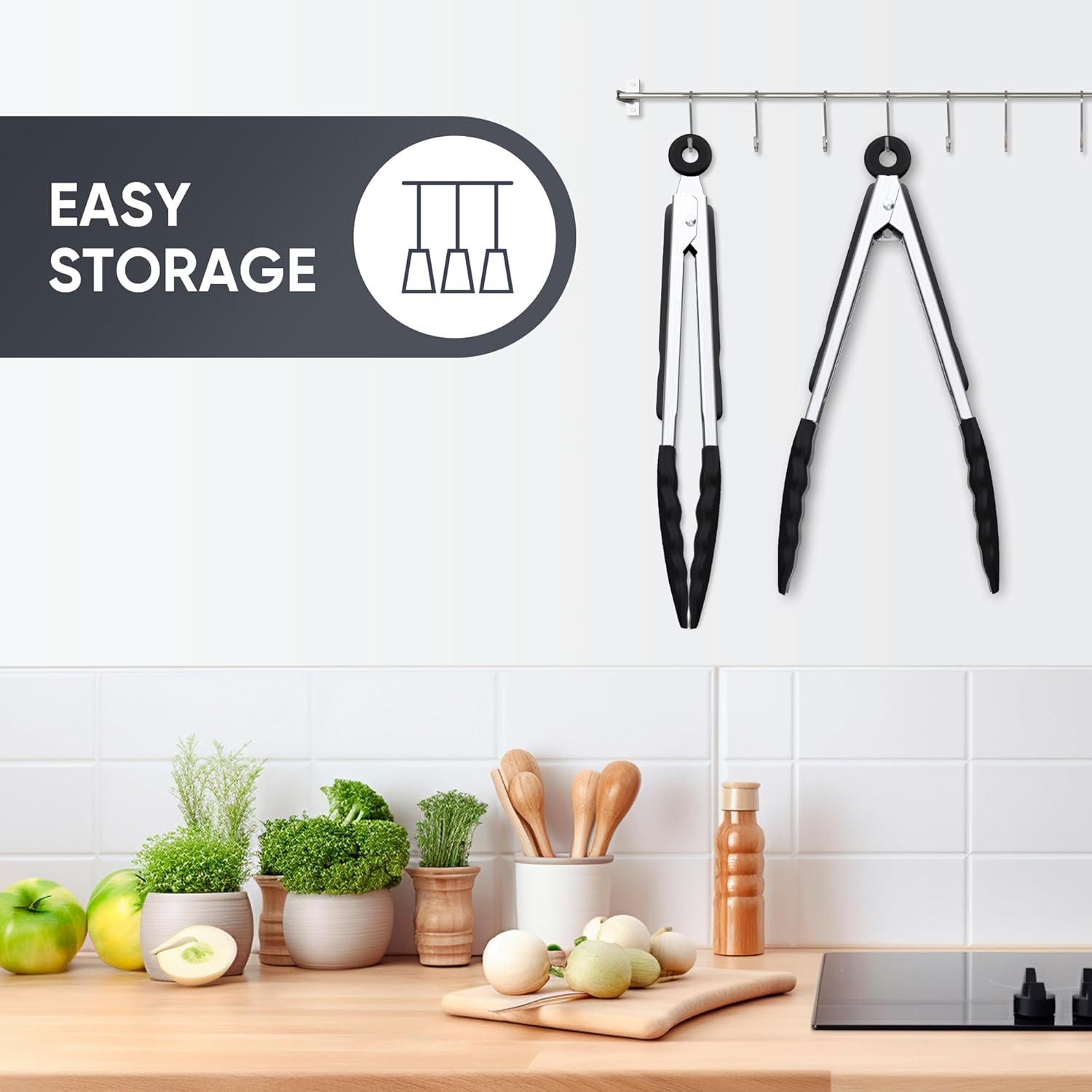 • Non-Stick & Heat Resistant Tongs: Being heat-resistant up to 480° F/250° C, these tongs are safe for cooking or grilling. The non-stick silicone tips won't scratch your cookware or dishes whether you use them for cooking, stirring, or serving meals.