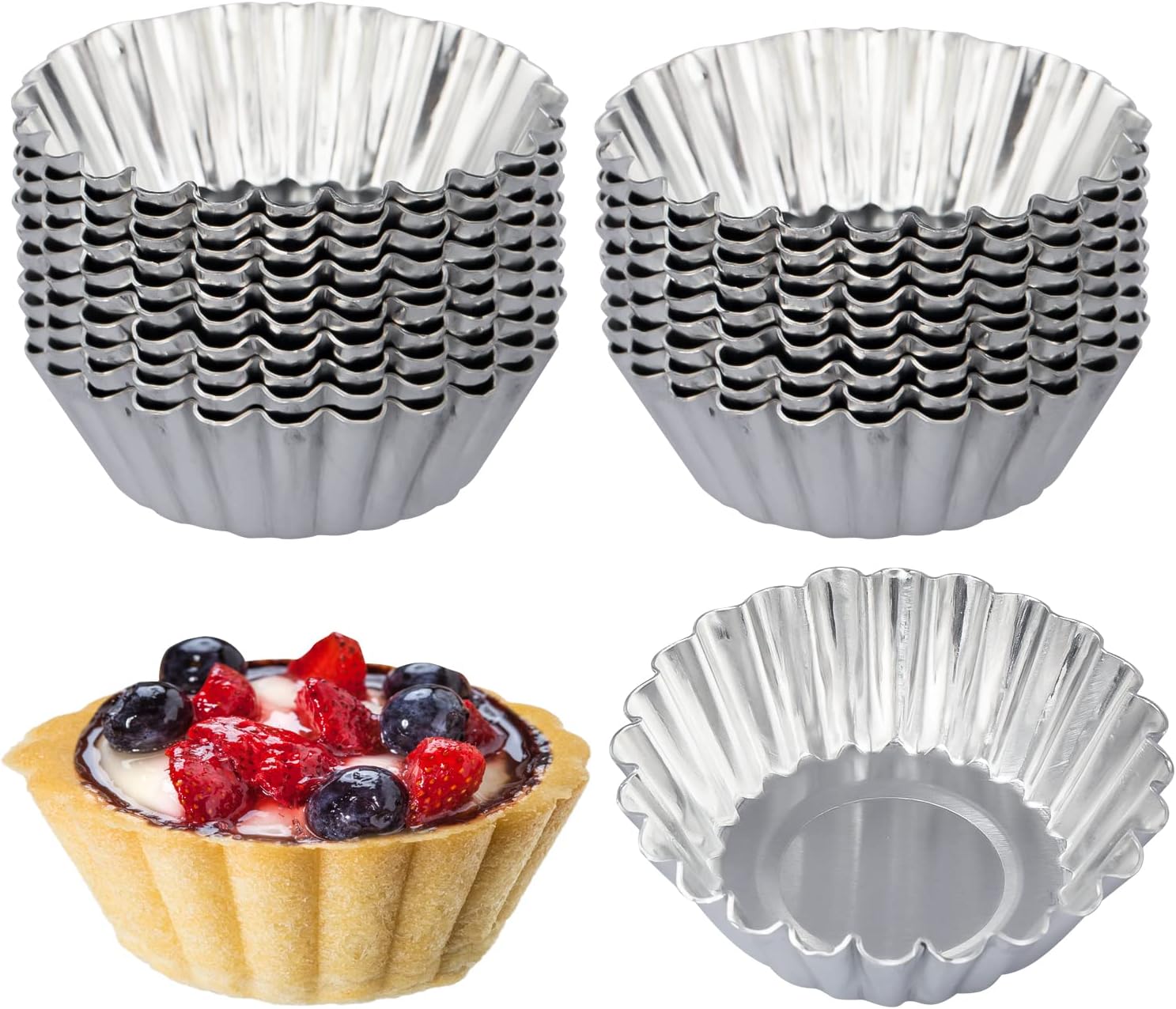 ISKYBOB 20 Pack Egg Tart Pans, 2.6 x 0.8in Small Metal Cupcake Pans Pie Cookie Muffin Tins Reusable Baking Mold Cups