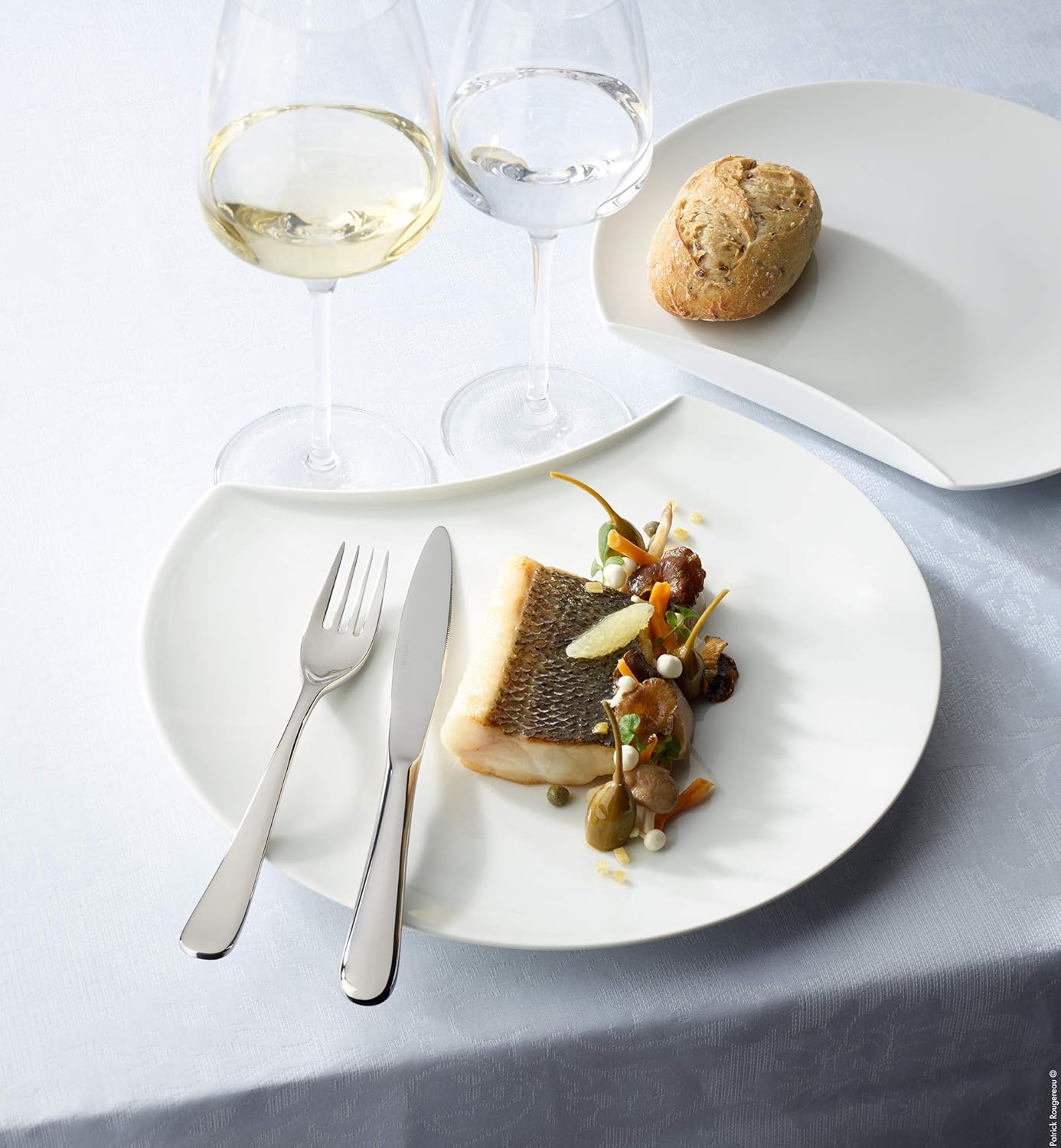 • Luxury 5-Piece Cutlery Set: The Aquatic collection seamlessly combines refined curves with sleek, fluid lines, resulting in a true masterpiece of design. Featuring a table fork, table knife, coffee/tea spoon, dessert fork, and dessert spoon, this flatware set is ideal for elevating any dining experience.