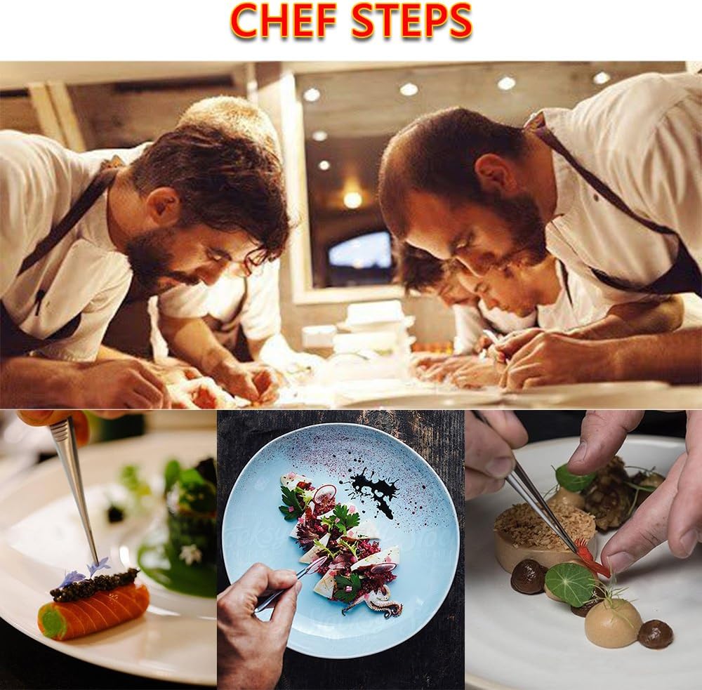 Kitchen Cooking Tweezers Culinary,3 Piece Set Stainless Steel Tweezer Precision Tongs Offset Tip for Cooking Food Design styling(6.3-Inch)