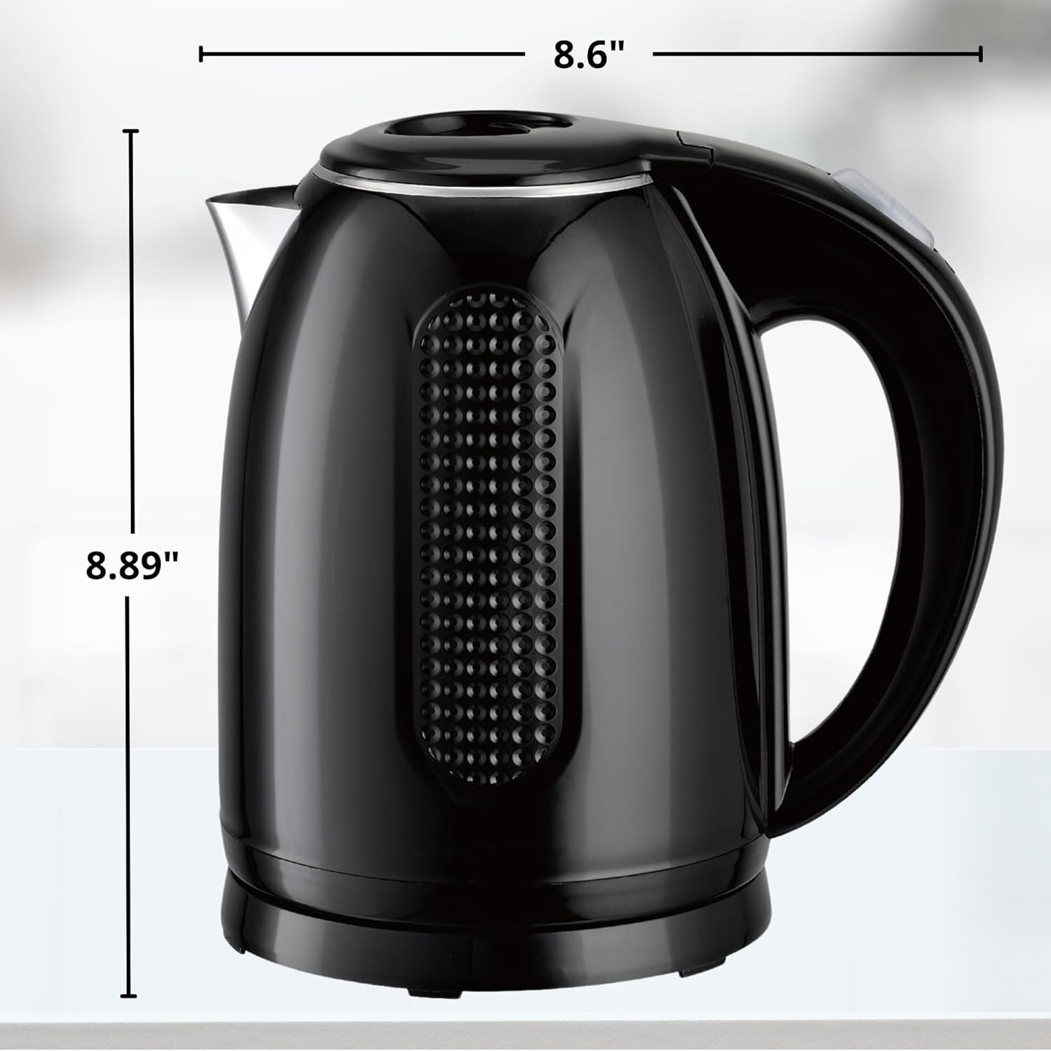 • BOILS CLEAN WATER FASTER – Powered by 1100 watts (120V), this kettle boils up to 1.7 liters of water in just minutes, saving electricity compared to traditional stovetop kettles. Made with food-grade 304 stainless steel, every surface of the kettle that comes into contact with water ensures pure and healthy water for your tea, coffee or other beverages.