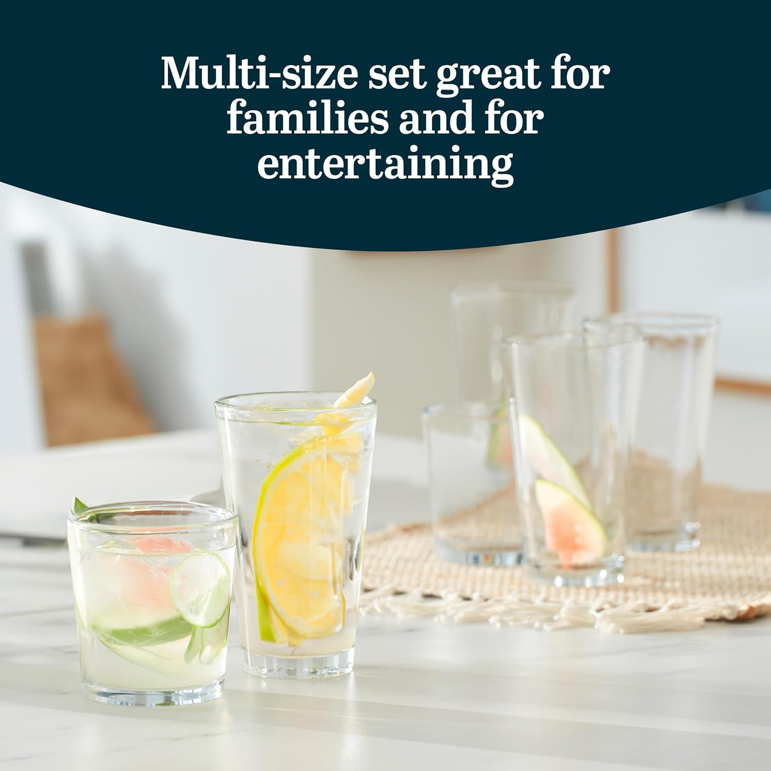 • Durable and Stylish: Our stylish glass cups set is perfect for those starting a kitchen glassware sets collection or adding to an existing collection; this 16 piece durable, modern drinking glasses set is long lasting and offers great value