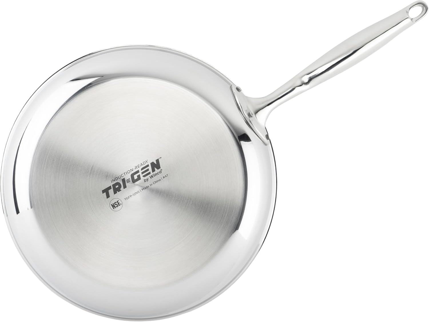 WINCO Tri-Ply Frying Pan, 12-dia, Silver