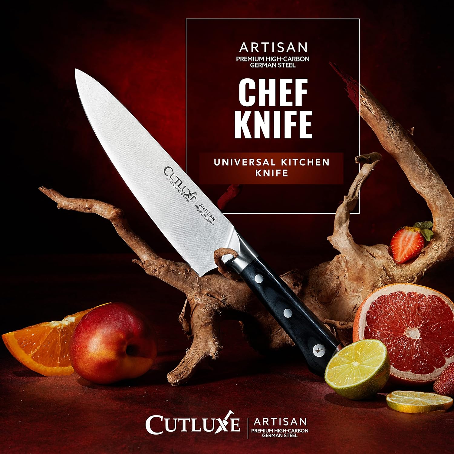 Cutluxe Chef Knife – 8" Kitchen Knife, German High Carbon Steel, Full Tang, Ergonomic Handle Design, Sheath Included – Artisan Series