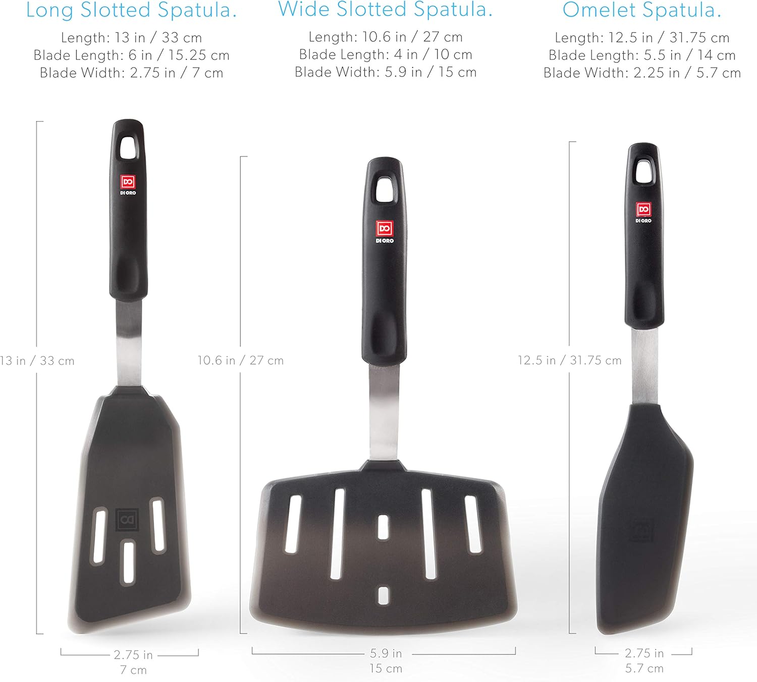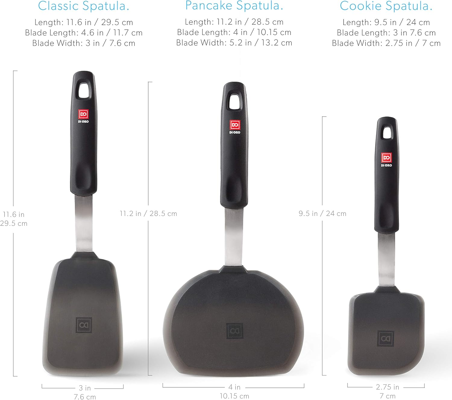 • ONLY THE BEST – We have combined our wildly popular Designer Series Turner Spatulas in to one ultimate 6-piece set. Each piece in the DI ORO Designer Series Ultimate 6-Piece Turner Spatula Set is made with Food Grade, BPA Free, and LFGB Certified Silicone. Built to withstand the heat, each spatula is heat-resistant up to 600°F, both the spatula’s handle and blade, which means you will never melt your favorite spatula.