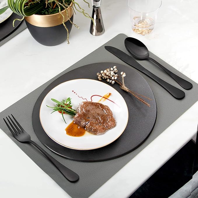 • High quality silverware, this 20 piece black flatware set is made of premium stainless steel which ensures your health, sturdy enough for basic daily use, rust resistant and durable for years to come