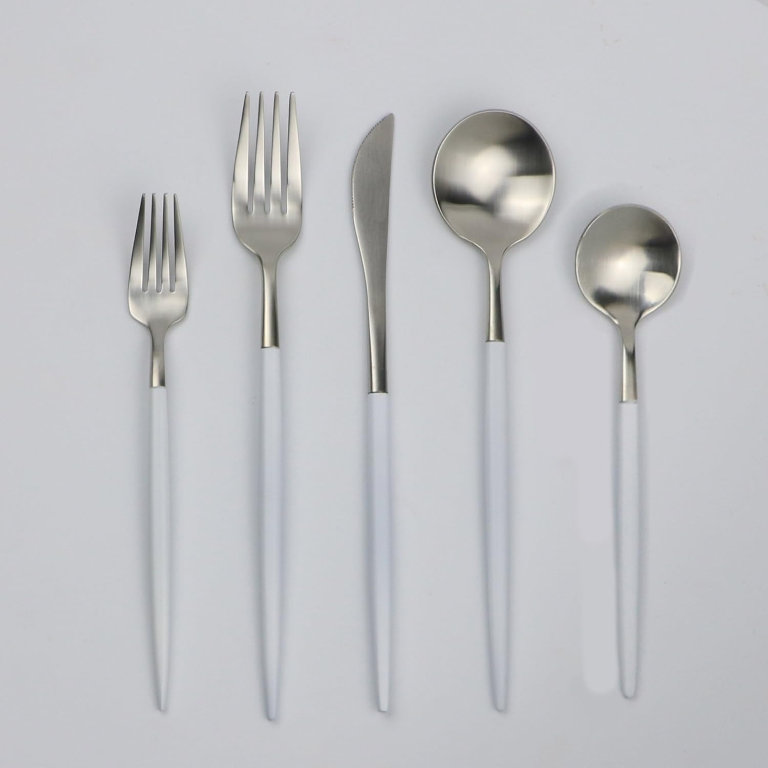 5-Pieces Luxury White Handle Silver 18/10 Stainless Steel Flatware Set, Matte Finish, Service for 1
