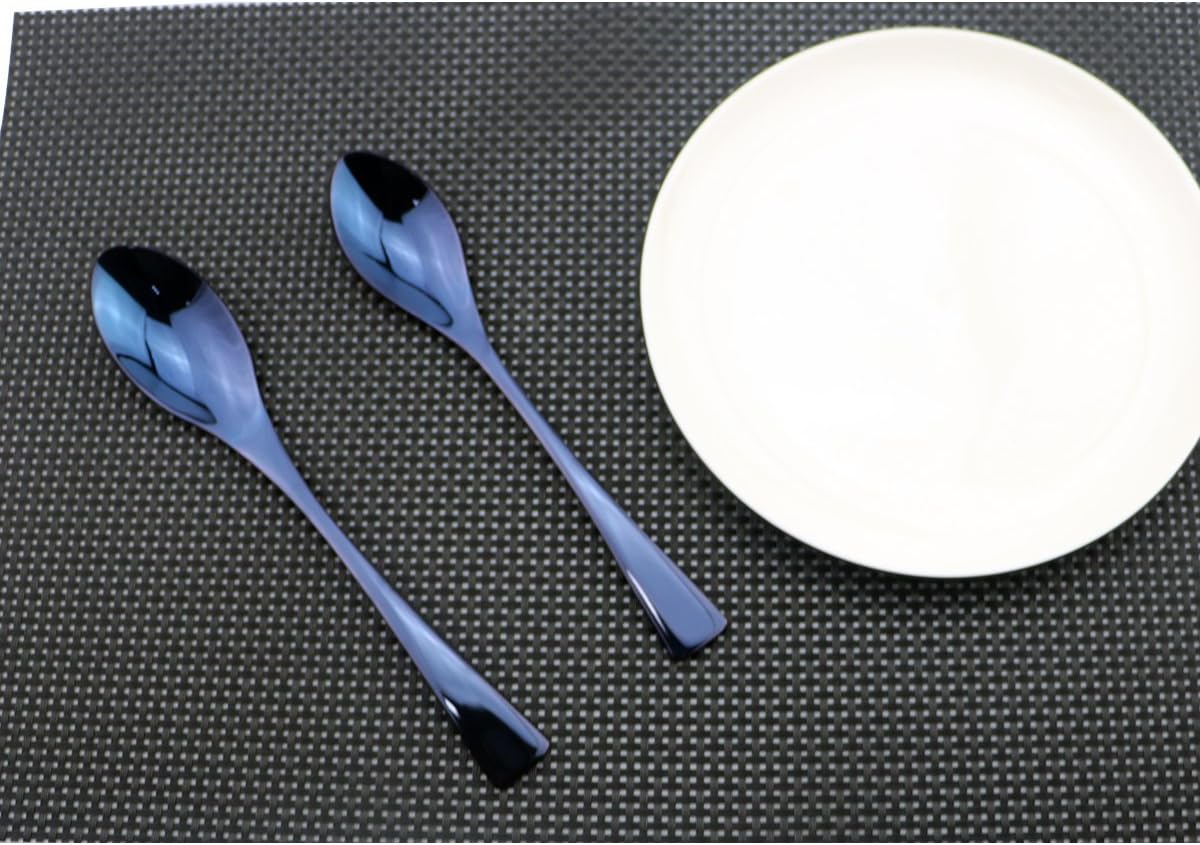 Flatware Set 18/10 Stainless Steel Mirror Polished Blue Cutlery - Silverware Utensil Set of Serrated Steak Knife Dinner Fork Knife Spoon Salad Fork Dessert Spoon,6 Piece Service for 1