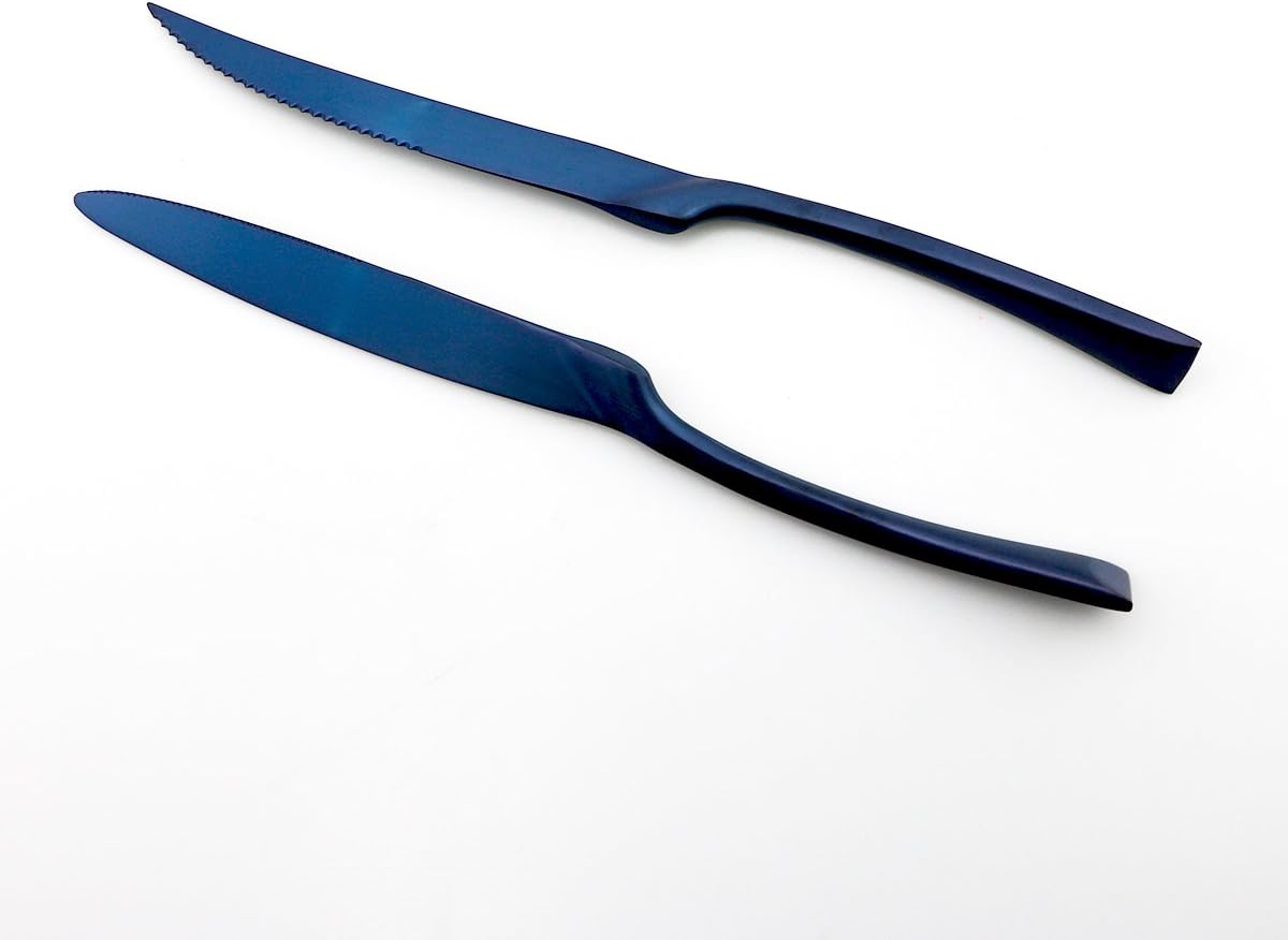 JASHII Luxury 18/10 Stainless Steel 8 Piece Matte Jubilee Blue Serrated Steak Knife Colorful Serving Black Utensil Set Replace Black